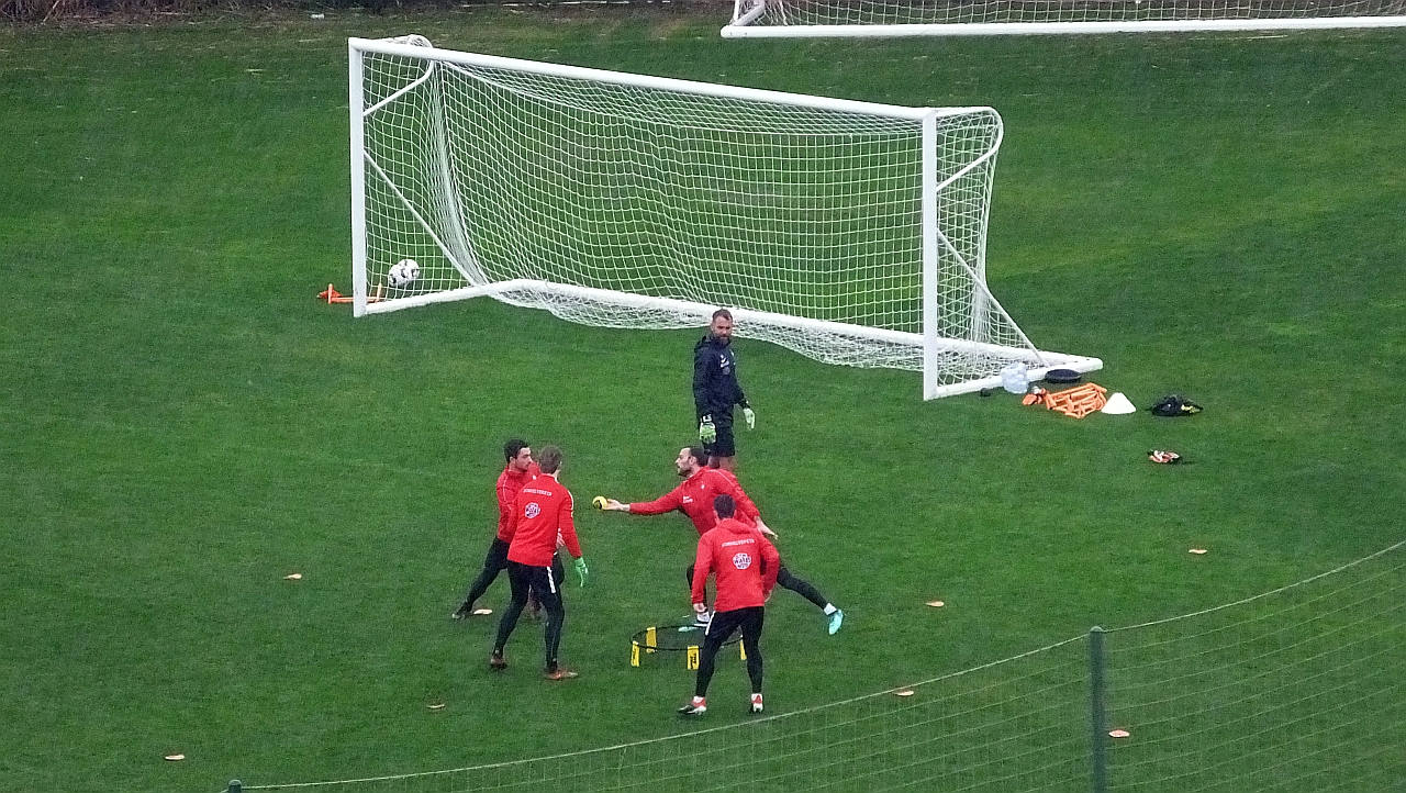 Einzig Steve Breitkreuz trainierte am Vormittag mit Marc Lorius individuell auf dem Platz, ebenso auch unsere vier Torhüter unter Max Urwantschky.