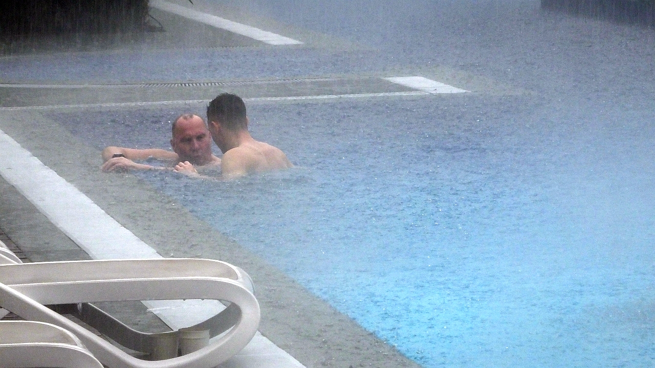 Für alle anderen war im Spa-Bereich das Ausschwimmen angesagt. Kurzer Blick zum Außenpool: