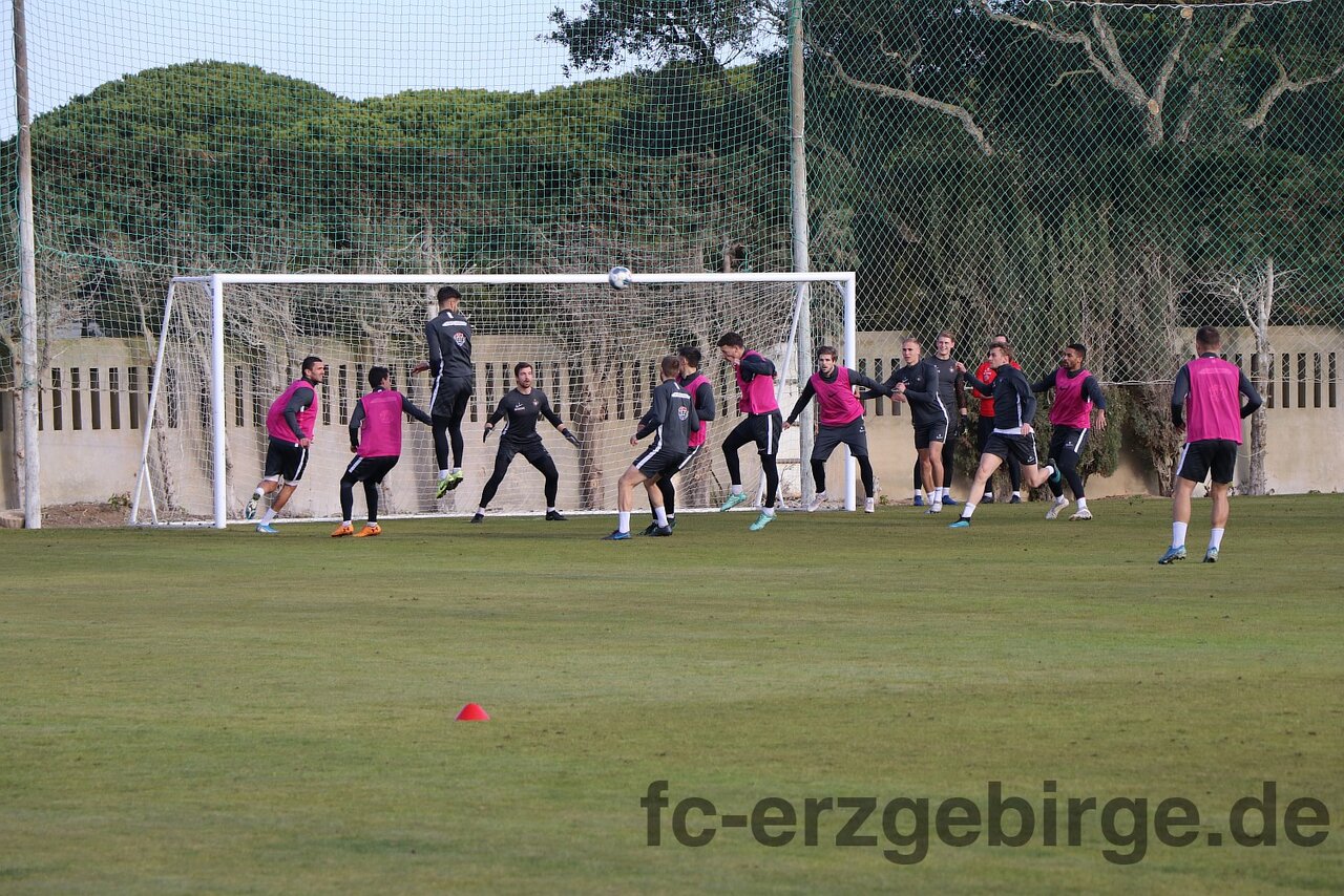 Danach teilte Cheftrainer Dirk Schuster die Jungs in zwei Mannschaften ein, die so auch gegen Magdeburg je eine Halbzeit spielen werden. Jetzt wurden offensive und defensive Standards geübt.