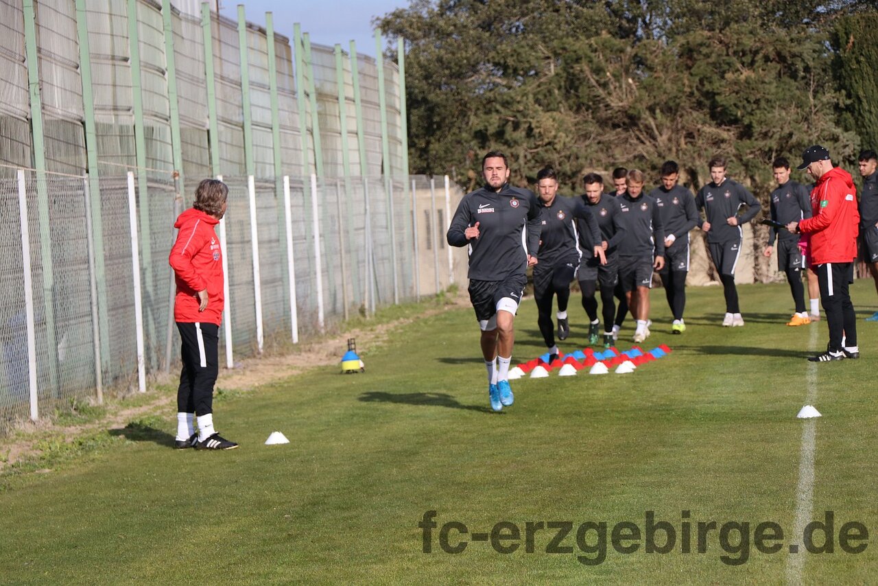 Heute stand das am Nachmittag anstehende Testspiel gegen den 1. FC Magdeburg im Fokus des Trainings. Nach einer individuellen Erwärmung waren zuächst Koordinationsläufe mit kurzen Sprinteinlagen angesagt.