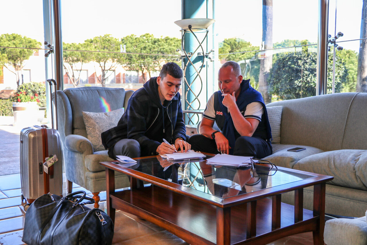 Gegen 15 Uhr die Ankunft im Teamhotel an, wo schon das ganze Trainerteam auf Jacob wartete.