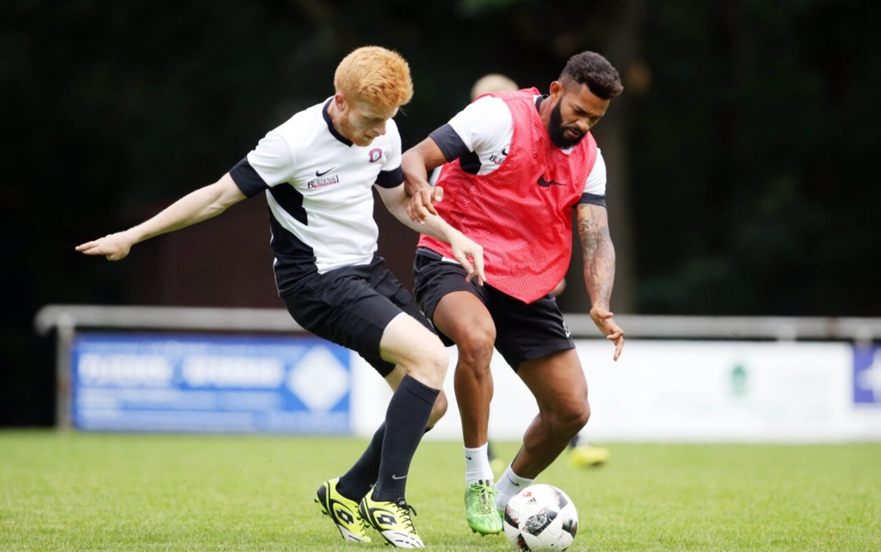 Hier sehen wir Neuzugang Fabian Kalig und Cebio Soukou in Aktion. Spielformen und taktische Übungen sind schließlich die Inhalte des Trainings am Nachmittag.