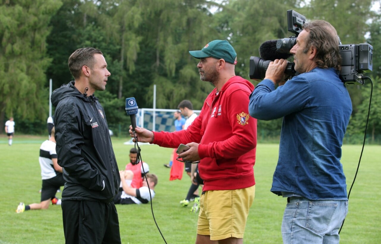 Und am ersten kompletten Trainingstag im Camp hatten die Veilchen auch gleich TV-Besuch. Hier ist der MDR-Reporter Jörg Röhrig gerade mit Christian Tiffert im Gespräch.