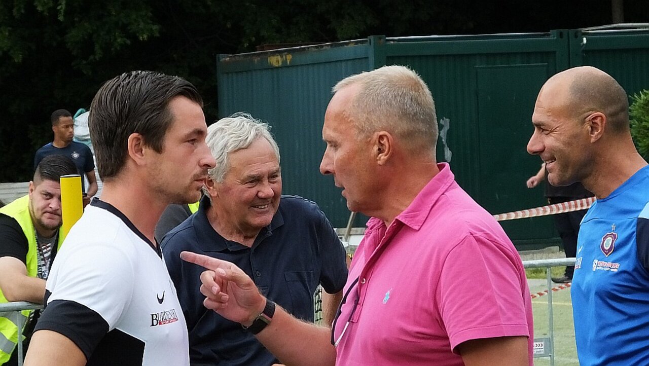 Hier sind wir bereits in Bautzen - FCE-Präsident Helge Leonhardt im Gespräch mit Martin Männel, dahinter Vorstandsmitglied Lothar Schmiedel und Fitnesscoach Werner Schoupa.