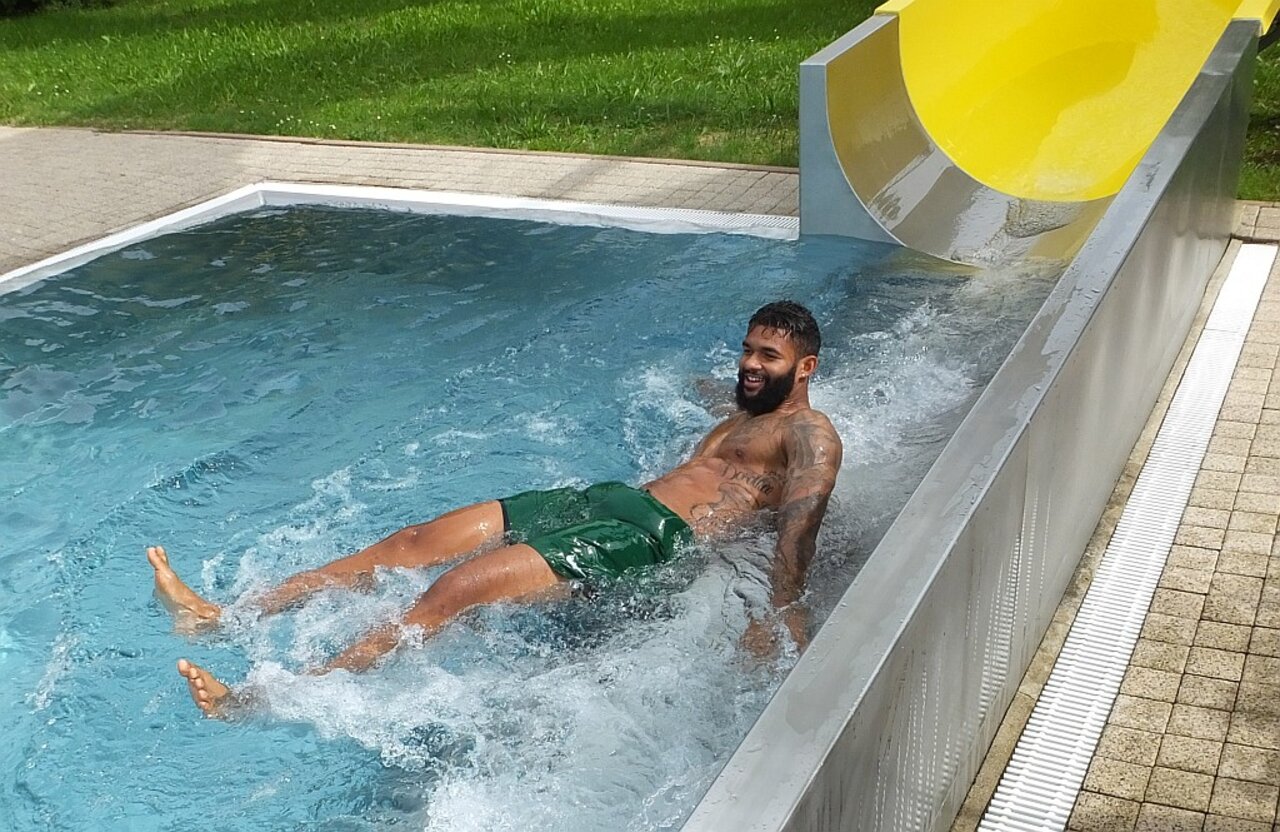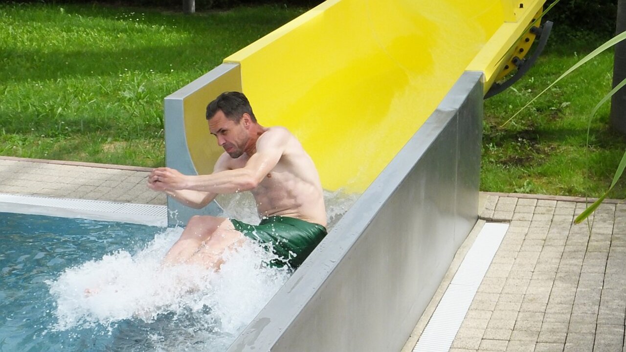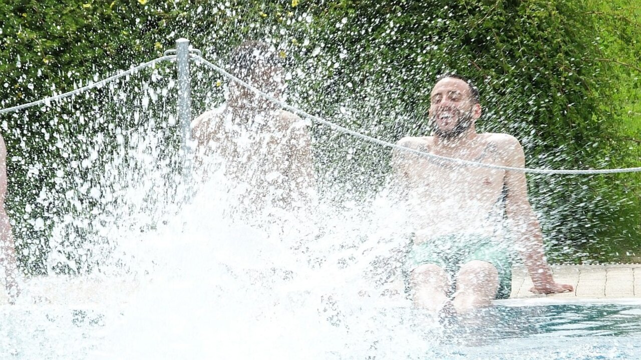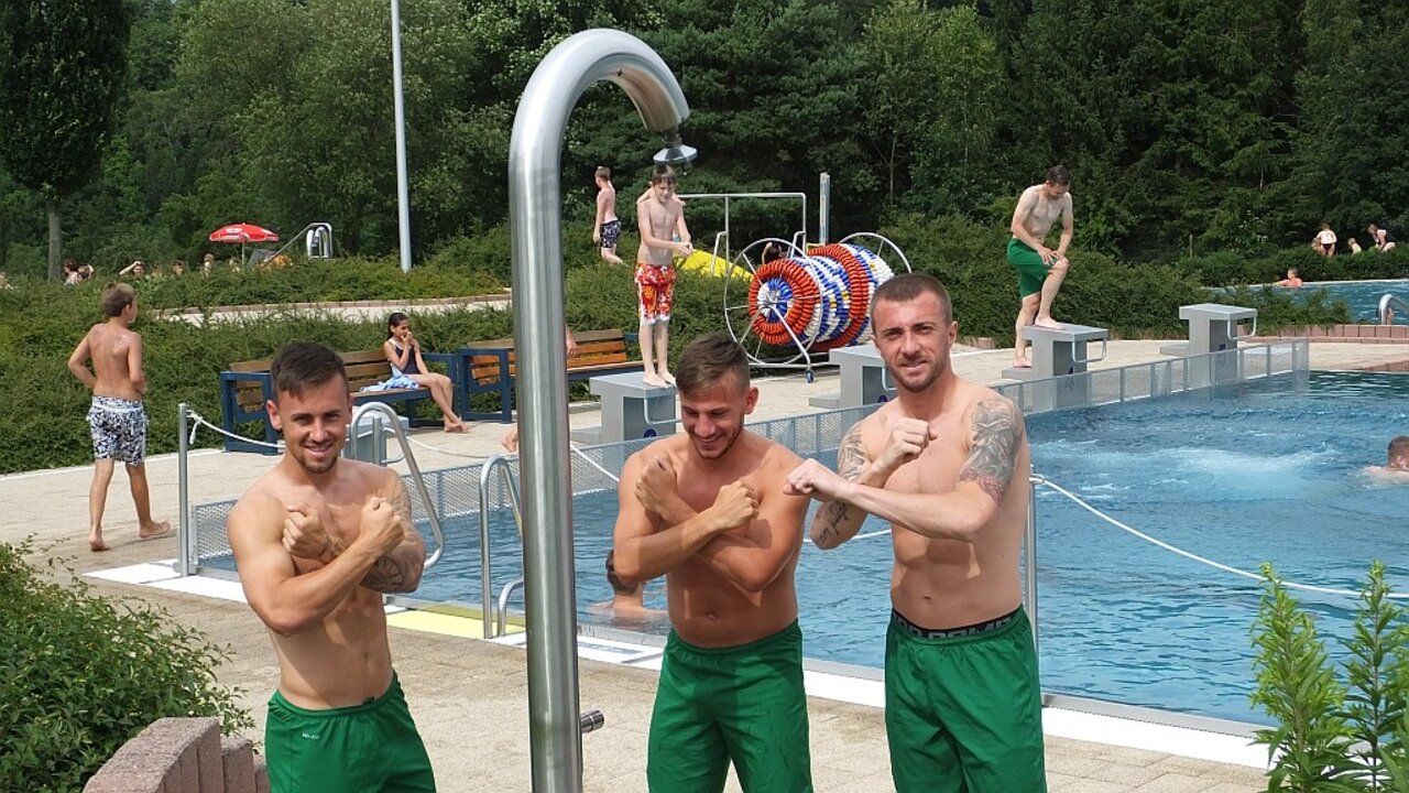 Als Belohnung für die prima Mitarbeit im Camp spendierten Pavel Dotchev & Co. unseren Jungs heute einen Besuch im Freibad - eine Danke-Trainingseinheit quasi.