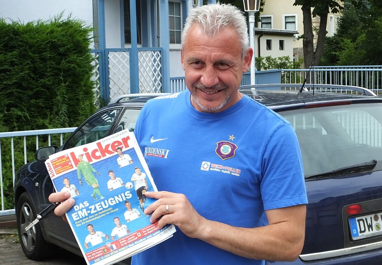 Chefcoach Pavel Dotchev hier mit dem neuesten Fachmagazin. Auf ihn sowie sein Trainer- und Funktionsteam wartete am Abend übrigens noch ein 'kleines Sachsenderby'.