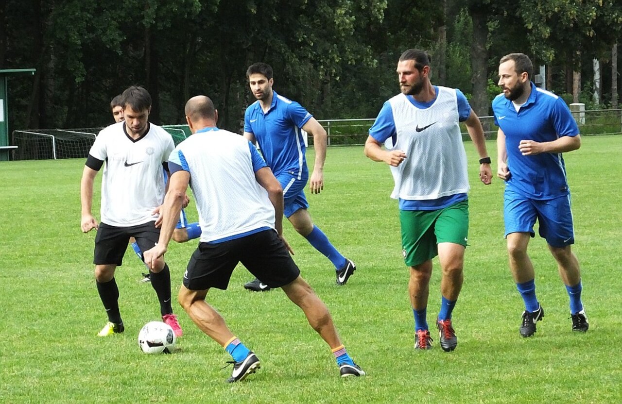 Derweil ist die Mannschaft beim Training. Die Elf vom gestrigen Test in Lübben läuft aus, der andere Teil der