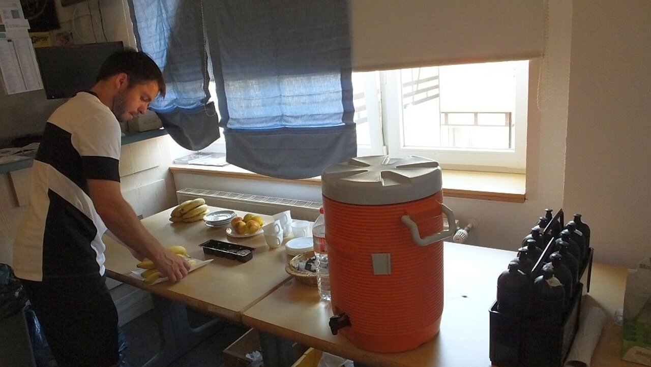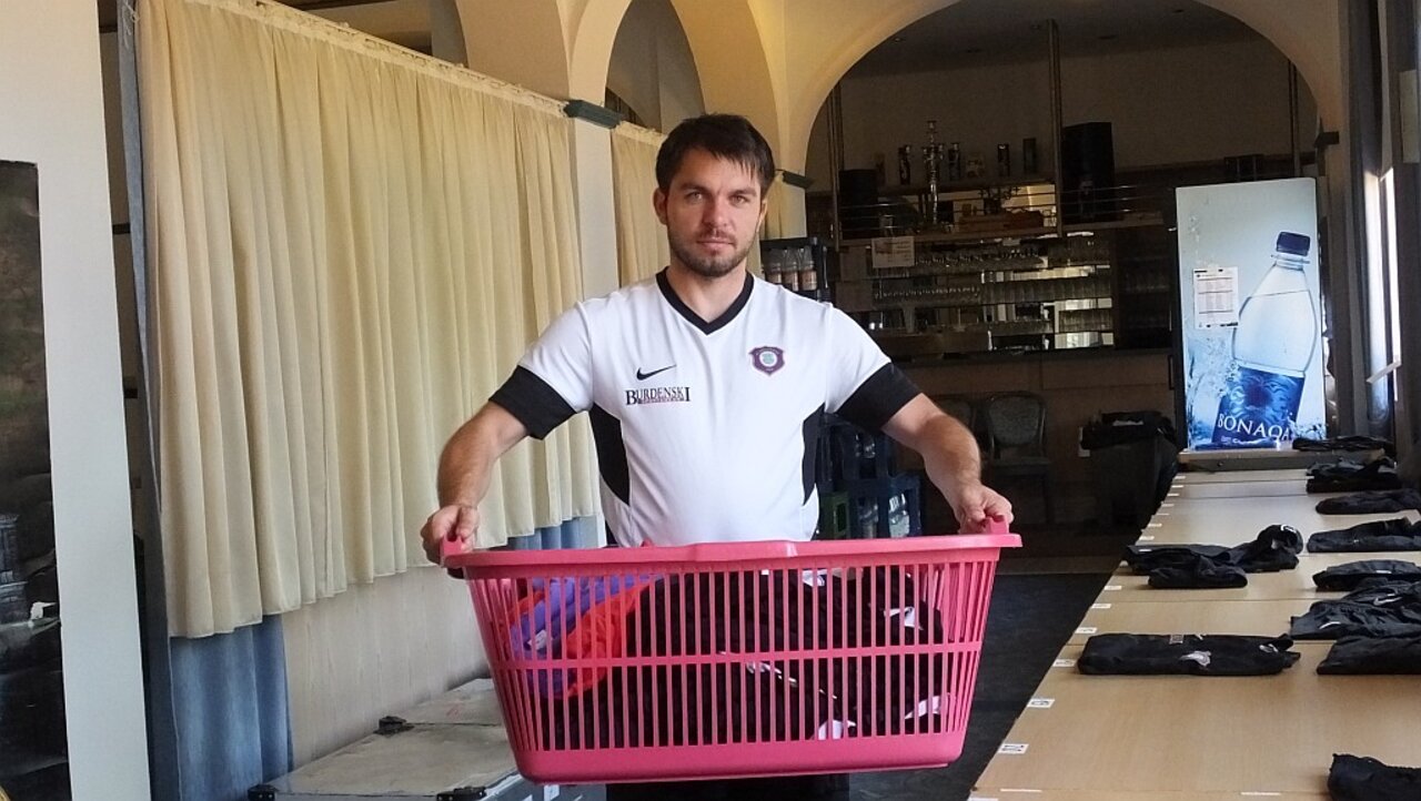 Hier kommt Tommy gerade mit frischer Trainingskleidung. Wenig später ist er bereits wieder an anderer Stelle beschäftigt.