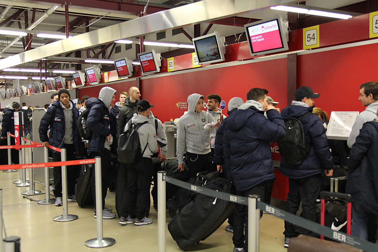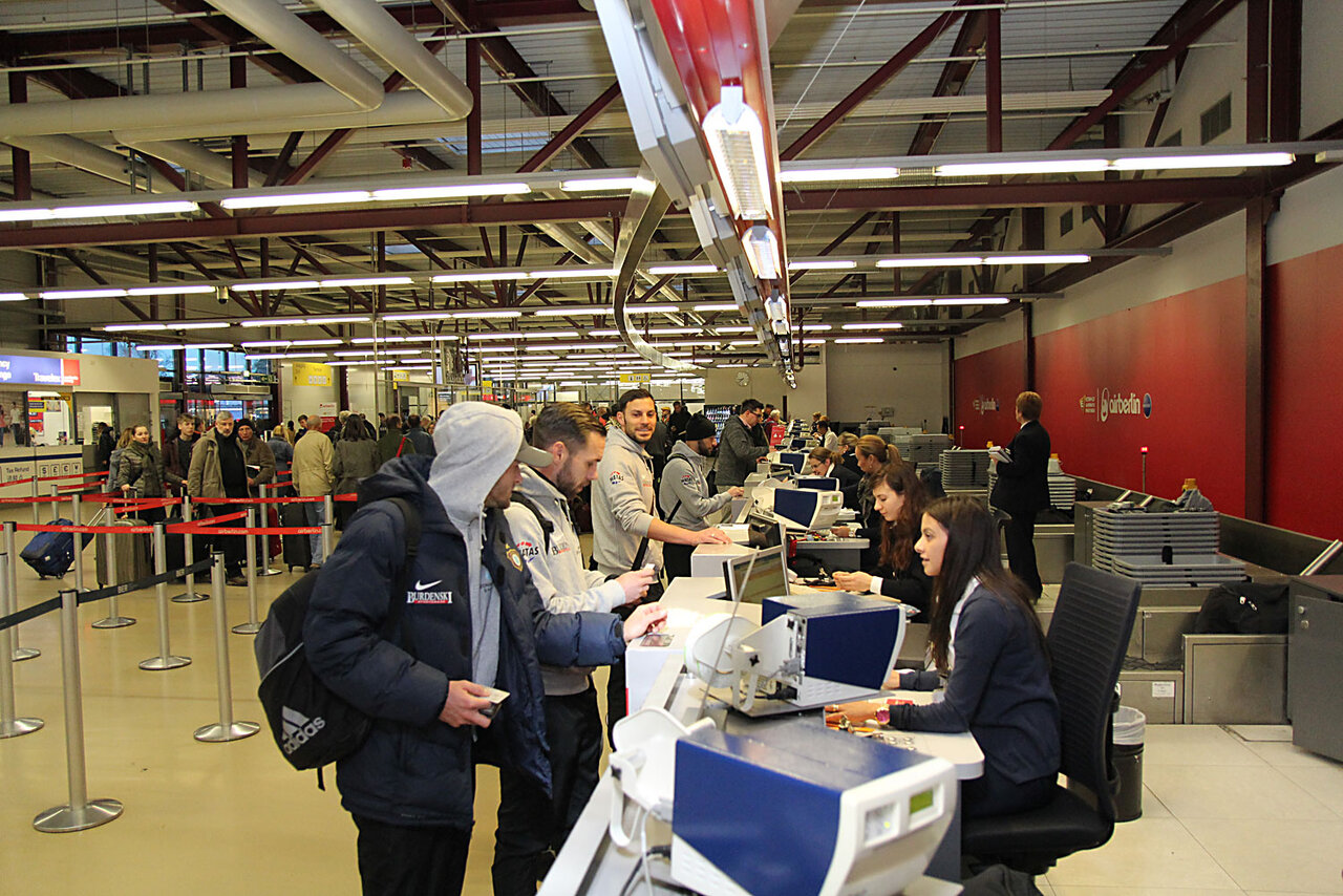 Am Flughafen angekommen, ging es direkt zum CheckIn-Schalter, wo jeder Spieler seine persönlichen Gepäckstücke abgab.