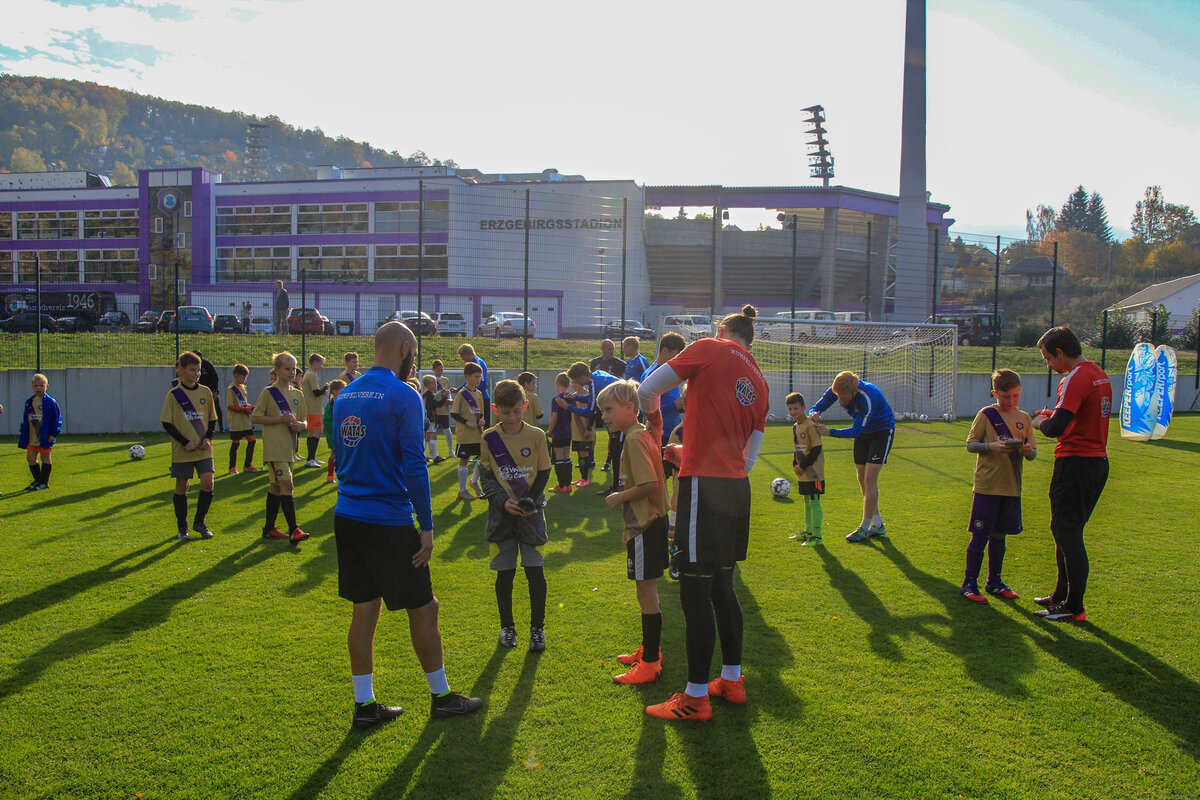 In der kommenden Woche findet das letzte VeilchenCamp 2018 statt. Wie bereits in den Jahren zuvor waren allen Camps komplett ausgebucht. In der jeweiligen Ferienwoche geht es um Spass und Freude. Dabei vermitteln unsere Trainer neben viele verschiedenen Spiel- und Staffelformen, auch Grundkenntnisse fußballspezifischer Techniken. Zum Camp gehört auch das Ablegen des DFB Fußballabzeichens. Die Kinder müssen dabei fünf Stationen und Punkte sammeln, um das Sportabzeichen in Gold, Silber oder Bronze zu erlangen. Zu den Höhepunkten der jeweiligen Veilchencamps zählt sicherlich unsere Mini - WM und die umjubelten Biathlon Staffeln. Höhepunkt der letzten Woche war sicherlich die Autogrammstunde bei der 1. Mannschaft. Vor dem Freitagstraining nahmen sich unsere Spieler und Trainer die Zeit und erfüllten die Autogrammwünsche der Mädchen und Jungs. Unser Dank gilt an dieser Stelle allen Trainern und Betreuern der Camps und den Mitarbeitern vom Veilchencatering für die tolle Verpflegung. Auch 2019 werden die beliebten VeilchenCamps wieder stattfinden. Die Termine erfahrt ihr demnächst über die Homepage.