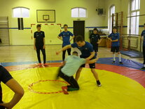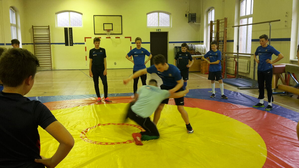Am Mittwoch, gab es für die U14 eine etwas andere Trainingseinheit zur Vorbereitung auf die weiteren Wettkämpfe unserer jungen Veilchen. Gleichzeitig wussten die Jungs noch nicht welche Art des Trainings sie erwartet, als wir uns mit den Kleinbussen in Richtung Lößnitz aufmachten. Angekommen in der Turnhalle der Grundschule empfing uns Björn Schöniger, einst selbst erfolgreicher Ringer und jetzt Trainer der Männer und des Ringernachwuchs unseres Vereins. Nachdem die Jungs nun wussten was sie erwartet, ging es auch gleich auf die Matte, allerdings natürlich erst zur Erwärmung. Einige Übungen glichen auch unserer Erwärmung, jedoch kam natürlich auch Ringerspezifisches dazu. Somit war man recht schnell auf erforderlicher „Betriebstemperatur“. Anschließend bekamen wir das Training der Ringer in komprimierter Art hervorragend von Björn vermittelt. Natürlich kam es am Ende auch zu den dazugehörigen „Kämpfen“. Völlig "platt", aber mit strahlenden Gesichtern, wurde das Training beendet. Alles in allem eine sehr gute Sache, die uns hoffentlich auch noch mehr Selbstvertrauen und Mut für die nächsten wichtigen Spiele gibt, in denen man auf Spieler des älteren Jahrgangs trifft. Auf diesem Weg möchte sich das Team der U14 und die verantwortlichen Trainer noch einmal ganz herzlich für die gemeinsame Trainingseinheit bei der Abteilung Ringen und speziell Björn Schöniger bedanken. Trainer Thomas Romeyke und das Team der U14