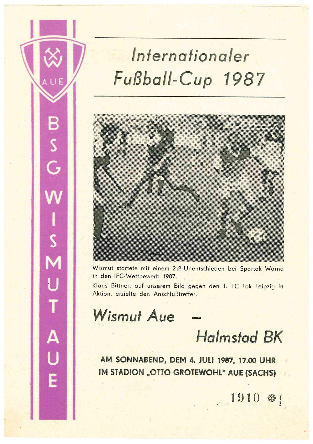 Vor 30 Jahren: Wismut Aue gegen Halmstad BK 2:1 (1:1)