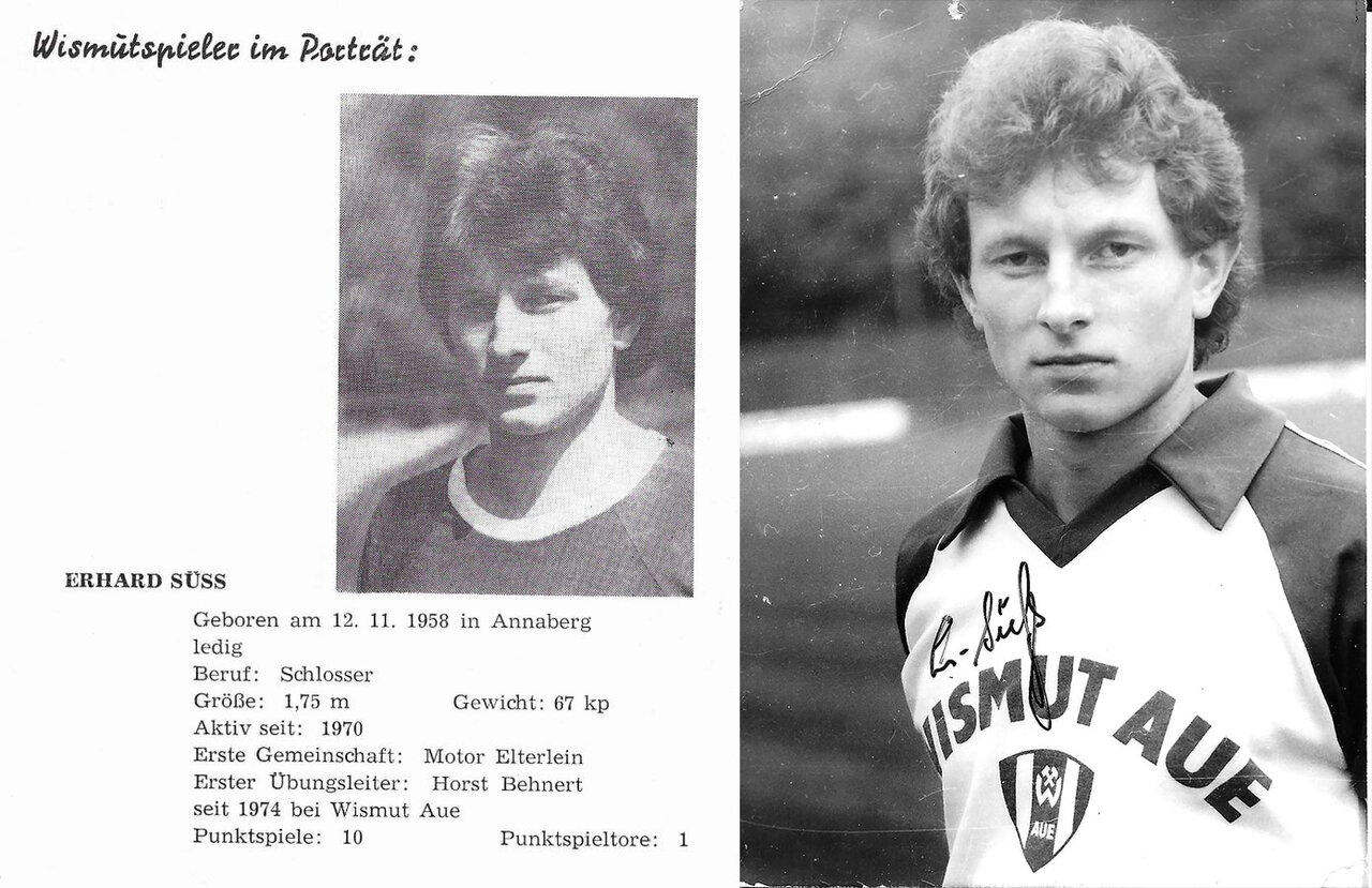 Zwischen 1981 und 1985 bestritt Mittelfeldspieler Erhard Süß 75 Spiele für die Veilchen in der Oberliga (65), im FDGB-Pokal (6) sowie im Intertoto-Cup (4). Sein wohl wichtigster Treffer war zugleich sein erstes Punktspieltor für die Auer. Am 30. Mai 1981 erzielte es der Youngster im Abstiegskrimi gegen den 1. FC Magdeburg – das 1:0 nach 29 Minuten. Mit dem 2:1-Heimsieg sicherten sich die Veilchen damals am letzten Spieltag den Klassenerhalt.