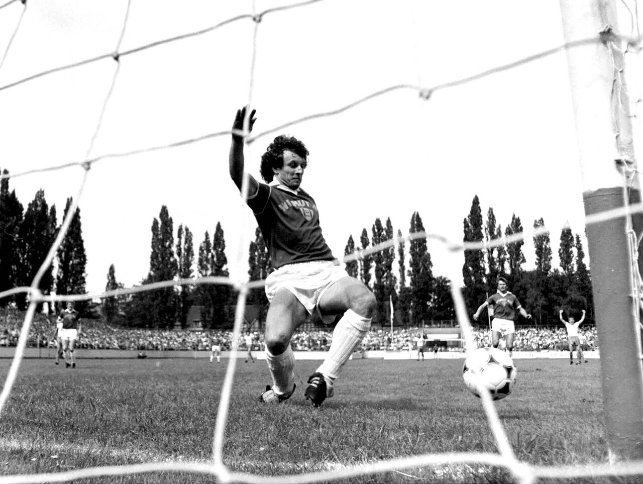 Erhard Süß verhindert kurz vor der Torlinie einen FCK-Treffer. Am Ende gewinnen die Veilchen das erste Oberliga-Punktspiel der Saison gegen den FC Karl-Marx-Stadt am 18. August 1984 auf der „Fischerwiese” mit 2:1.