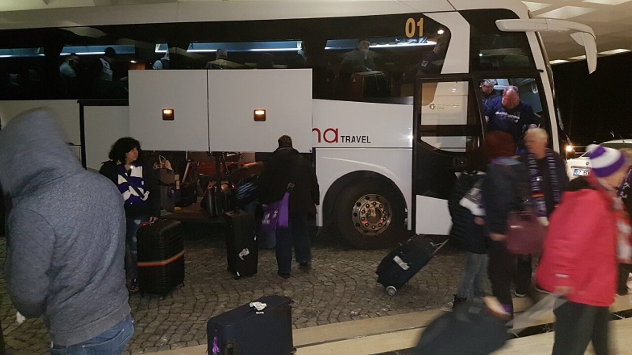 einer stattlichen Anzahl ebenfalls mitgereister Aue-Fans bereits erwartet und begrüßt wurden.