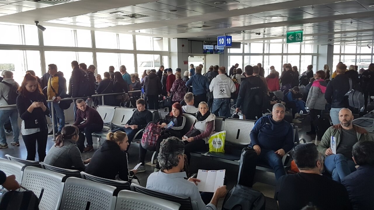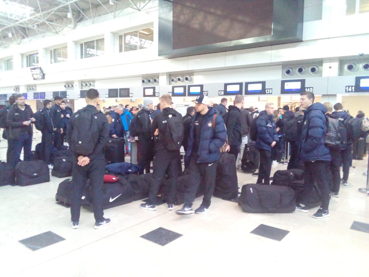 Nach dem Einchecken warteten wir gemeinsam mit unseren Kickern auf den Flieger, der uns wieder in die Heimat bringen sollte.