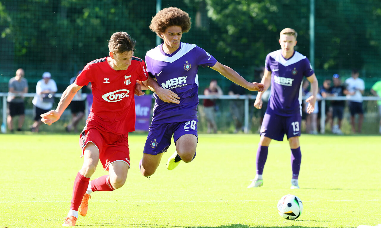Der FCE schickte nach einer kräftezehrenden Einheit am Vormittag eine bunt gemischte Mannschaft an den Start. Zwar bemühten sich die Veilchen um Spielkontrolle, doch Meuselwitz wirkte ausgeruhter und „griffiger“ zwei Wochen vor dem scharfen Start in der Regionalliga Nordost. Vor allem über die rechte Seite sorgte Pauling mit tiefen Läufen immer wieder für Gefahr und bereitete nicht zufällig das 0:1 durch Florian Hansch vor (35.). Wenig später war erneut Hansch nach einer Ecke per Kopf zum 0:2 zur Stelle (40.). Aue hatte vor der Pause durch einen Kopfball von Kilian Jakob die beste Gelegenheit zum Torerfolg.