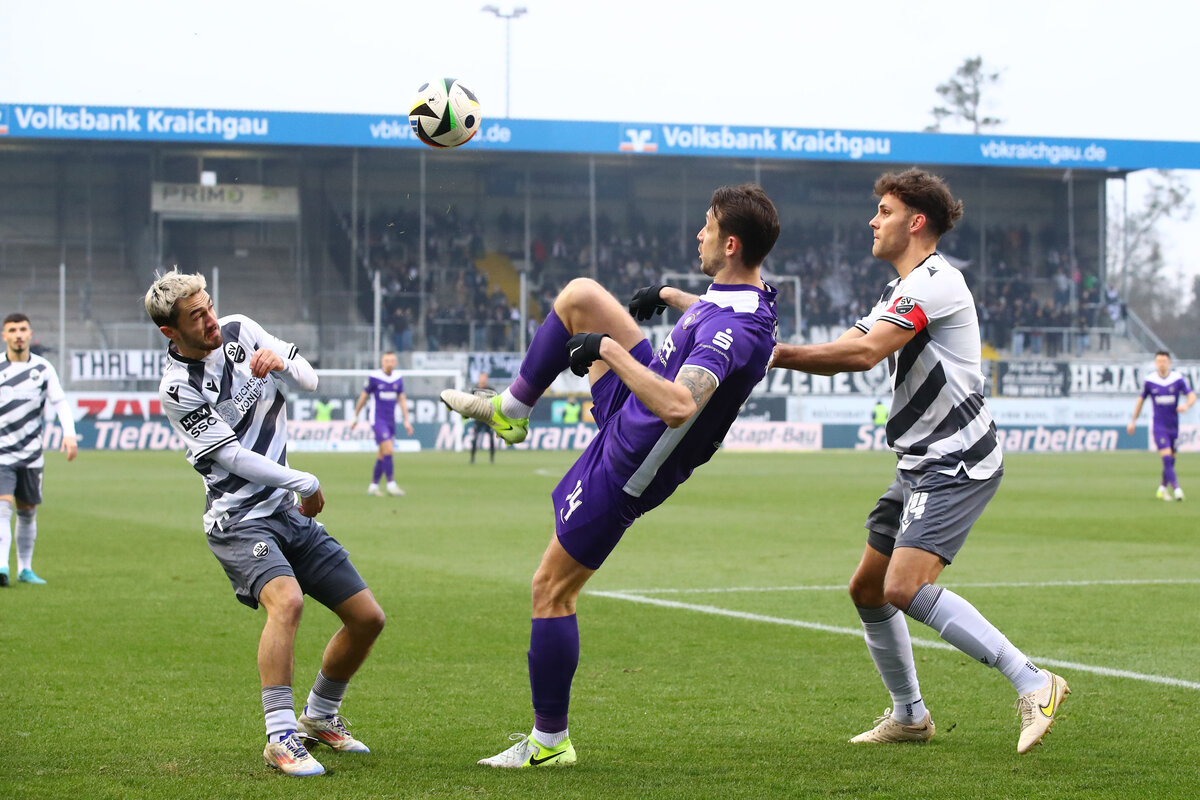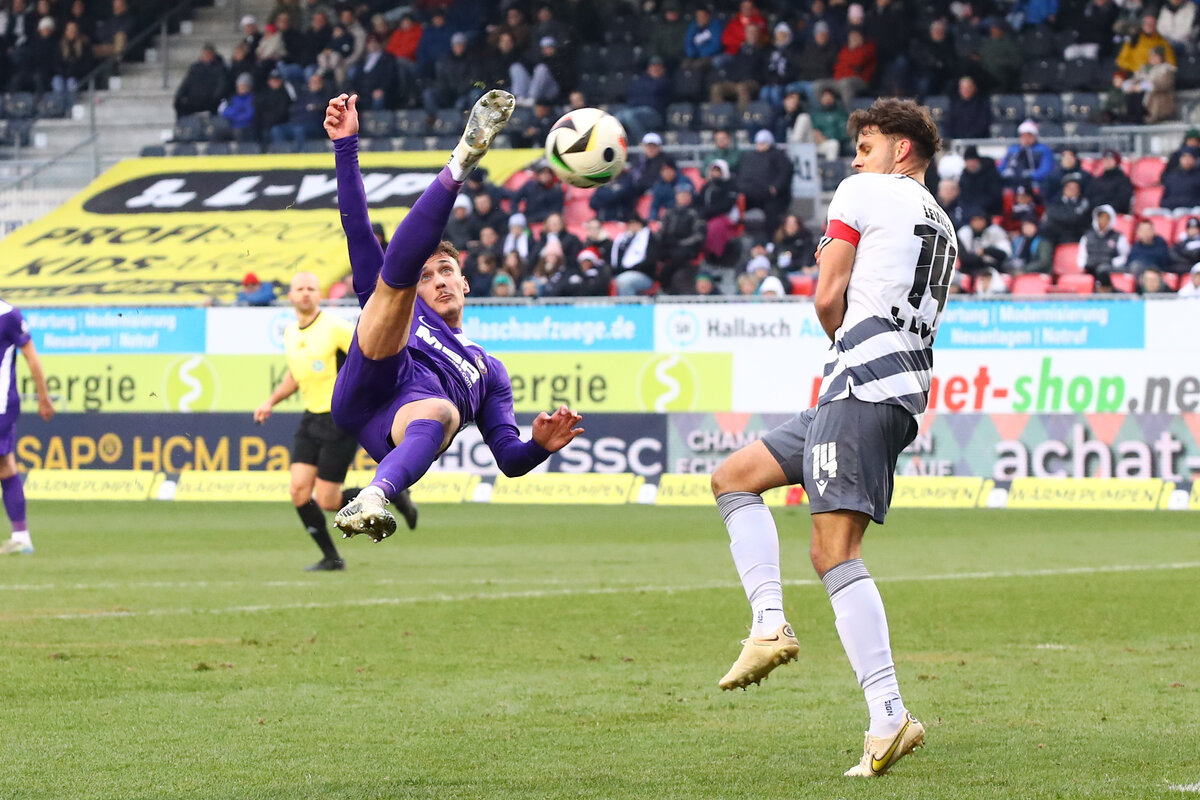 Damit nicht genug, denn die Veilchen blieben einfach auf dem Gaspedal. Nur fünf Minuten später drehten die Gäste das Spiel. Mit einem einzigen langen, präzisen Ball hebelte Niko Vukancic die Abwehrkette des SVS aus. Kilian Jakob war perfekt eingelaufen und behielt vor dem Kasten die Nerven. An Gorka vorbei traf der Auer Linksfuß zum 2:1. Die Führung hatten sich die Auer mittlerweile mehr als verdient. Bis zur Pause waren aber noch einige Minuten zu spielen und die Veilchen drehten am Hardtwald immer spielfreudiger auf, während Sandhausen kaum gefährlich vor das Tor von Martin Männel kam. Das dritte Auer Tor hatte Omar Sijaric auf dem Fuß. Nach einer tollen Kombination war der Flügelstürmer frei auf seinem Flügel in Richtung Tor unterwegs. Zu leichtfertig vertändelte Sijaric den Ball vor seinem Schussversuch und Lewald rettete im letzten Moment für Sandhausen. Aber einen Versuch hatte Sijaric in der ersten Halbzeit noch und diesmal löste er es artistisch. Nach einer Ecke auf den kurzen Pfosten blieb der Flügelstürmer erst an seinem Gegenspieler hängen und setzte dann zum Seitfallzieher an. Gorka streckte sich vergebens und der Ball schlug im Tor ein. 3:1 - Aue führte furios und ging mit dieser Führung in die Pause.