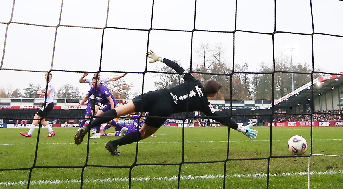 Nach dem Seitenwechsel drehte sich das Spiel aber nicht. Verl rotierte weiter und spielte auf das 2:0. Aue kam kaum einmal aus der eigenen Hälfte. Nur die Paraden von Martin Männel hielten Aue in dieser Phase irgendwie im Spiel. Vor allem Torschütze Alessio Besio bekam die Abwehr kaum gestoppt und der Stürmer war nah dran, einen Doppelpack zu schnüren. Es blieb beim wackeligen 1:0 und Aue schien an diesem Spiel keine echten Aktien mehr zu haben. Bis zur 70. Minute – dann klickte plötzlich ein Schalter um und die Veilchen nutzten eine Phase, in der die Verler die Zügel etwas lockerer ließen. Fast aus dem Nichts heraus kam Jannic Ehlers zu seiner ersten Torchance. Nach einer Vorarbeit von Guttau kam der Auer Stürmer im Strafraum zum Schuss. Keeper Philipp Schulze tauchte ab und konnte parieren, aber nur wenige Augenblicke später war der Schlussmann wieder gefordert. Ein Querschläger landete vor die Füße von Julian Guttau und der Auer scheiterte wieder an Schulze. Die Veilchen verschluderten ihre wenigen Chancen zu leichtfertig, aber von Verl gab es ein unfreiwilliges Geschenk. Die anschließende Ecke jagte Guttau scharf in den Strafraum und im Zentrum köpfte Jonas Arweiler in den eigenen Kasten. 1:1 – der Ausgleich aus dem Nichts.