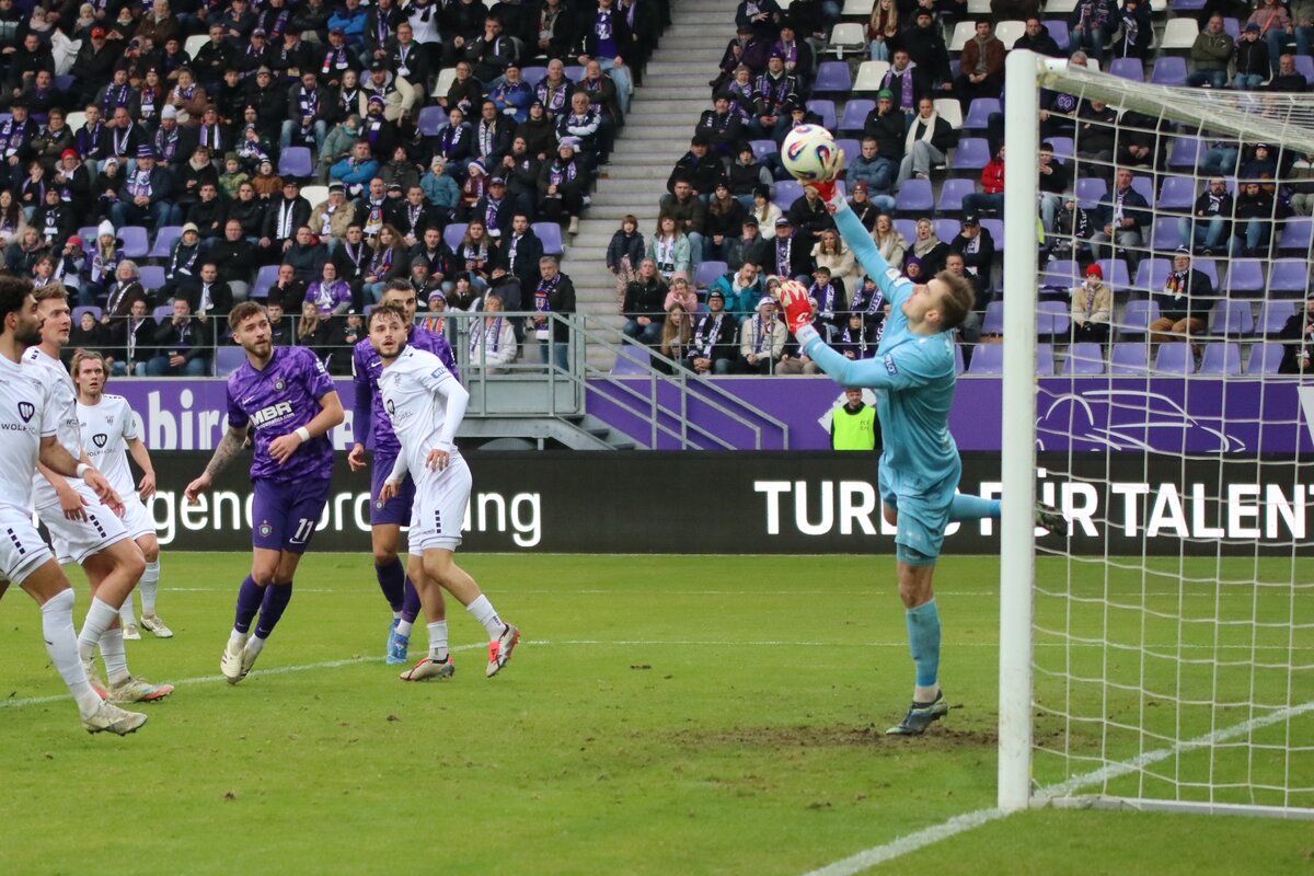 Die Rechnung war einfach: Mit einem Sieg gegen die Schnüdel und einem Patzer der Konkurrenz hatten die Veilchen die Chance, vor der Winterpause über den Strich zu springen. Die Marschrichtung war damit eigentlich klar. Aber in den Anfangsminuten zeigten die Gäste aus Bayern gleich, dass die drei Punkte hart erkämpft werden müssten. Schweinfurt versteckte sich nicht, zeigte keine Verunsicherung und versuchte, Aue früh in die eigene Hälfte zu drängen. Der Plan ging auch auf, denn Aue fiel in den ersten Minuten überhaupt keine Reaktion auf den Druck der Gäste ein. Nach zehn Minuten erspielten sich die Schnüdel die erste Chance. Der ehemalige Bundesligaspieler Johannes Geis flankte für die Gäste butterweich in den Strafraum und fand dort Stürmer Joshua Endres. Der Schweinfurter hätte glatt die Führung erzielt, wäre da nicht Louis Lord gewesen. Der Ersatzkeeper der Veilchen hatte schon in der vergangenen Woche mit starken Paraden den Punkt gesichert und war wieder zur Stelle. Lord riss die Arme hoch und lenkte den Ball über die Querlatte.