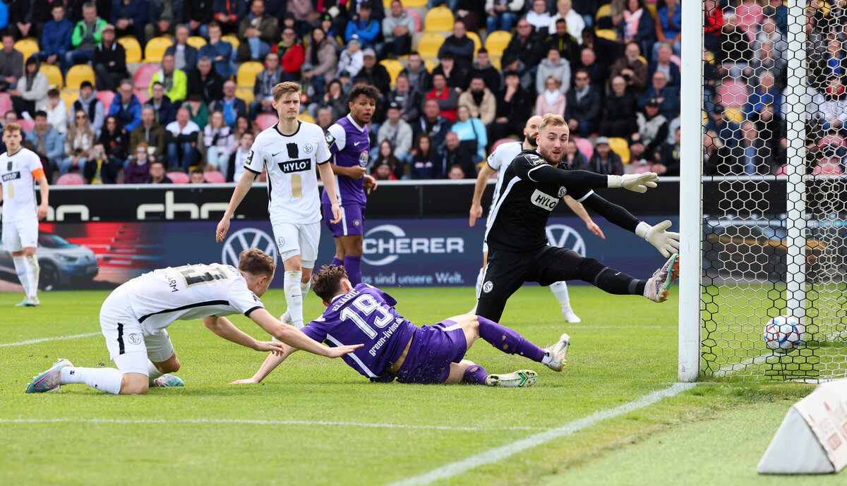 Mehrere Ausfälle zwangen Cheftrainer Pavel Dotchev schon vor der Partie einige Änderungen in der Startelf vorzunehmen. Maxi Thiel, Borys Tashchy, Nico Gorzel und Paul-Philipp Besong starten von Beginn und waren gleich in der Partie. Drei Minuten waren gespielt, da segelte schon der erste Schuss von Sijaric abgefälscht am Elversberger Tor vorbei. Die Veilchen waren sichtlich um eine Reaktion bemüht, nachdem man zuletzt mit einigen schwachen Leistungen Punkte verspielt hatte. Die beste Offensive der Liga stand aber auch noch auf dem Feld und die SVE hatte mit Neubauer und Mustafa auf der Gegenseite die ersten Torchancen. In der 13. Minute hatten die Lila-Weißen ihre bis dahin beste Chance. Besong schickte Rosenlöcher über den linken Flügel und dessen scharfe Hereingabe fand Strafraum Danhof. Der Rechtsverteidiger der Veilchen zog ab, aber Kristof im Elversberger Kasten war zur Stelle und im kurzen Eck.