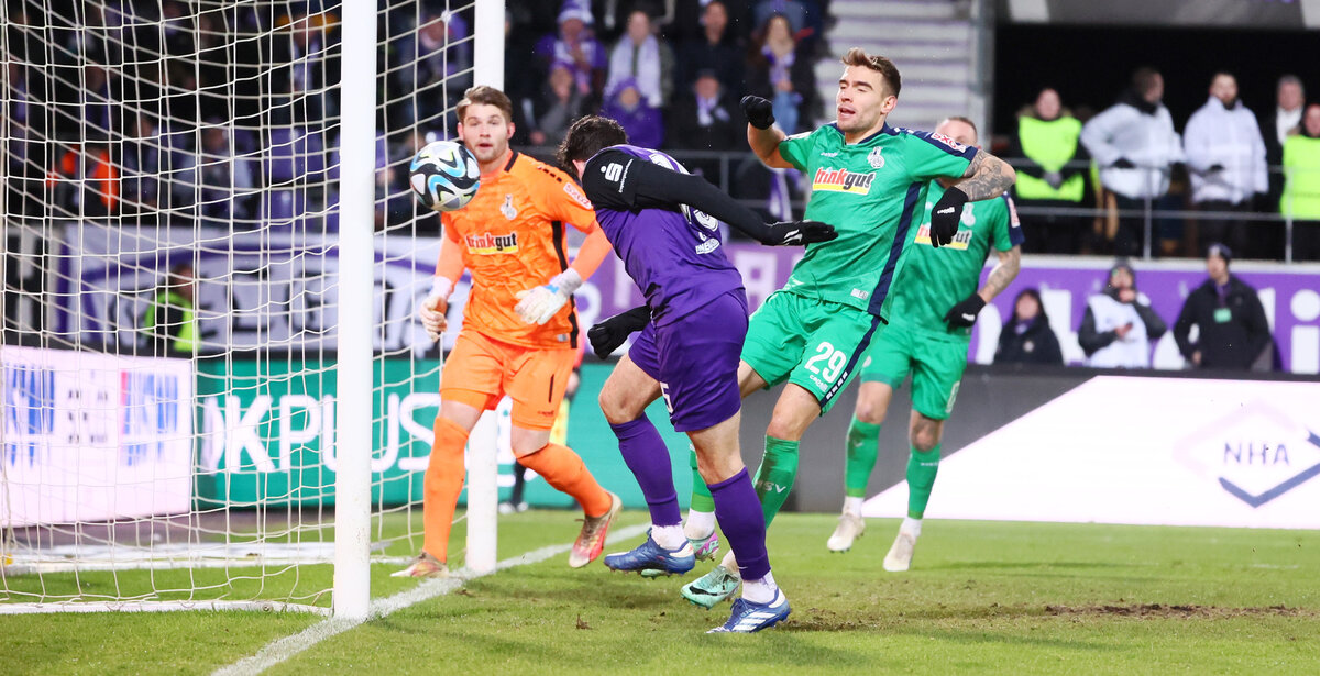 Letzter heißer Tanz im Erzgebirgsstadion in diesem Jahr - für den gesperrten Veilchen-Trainer Pavel Dotchev stand heute Co-Trainer Jörg Emmerich an der Seitenlinie. Nur eine Änderung nahm das Trainerteam nach dem Remis bei der Arminia aus Bielefeld vor und Marco Schikora kehrte zurück in die Startelf. Bei frischen Temperaturen und trockenen Bedingungen erwischten die Veilchen den besseren Start. Nach vier Minuten kombinierten sich die Lila-Weißen über Marvin Stefaniak und Linus Rosenlöcher in den Strafraum des MSV Duisburg. Mirnes Pepic kam aus spitzem Winkel zum ersten Abschluss der Partie, doch Vincent Müller im MSV-Kasten entschärfte die Situation mit einer Fußabwehr. Aue begann druckvoll und mit mehr Ballbesitz und hatte umgehend die nächste Gelegenheit. Wieder ging es über die linke Seite und die Flanke von Marvin Stefaniak köpfte Boris Tashchy in Richtung Tor. Wieder war Müller zur Stelle und angelte sich das Spielgerät aus der Luft.