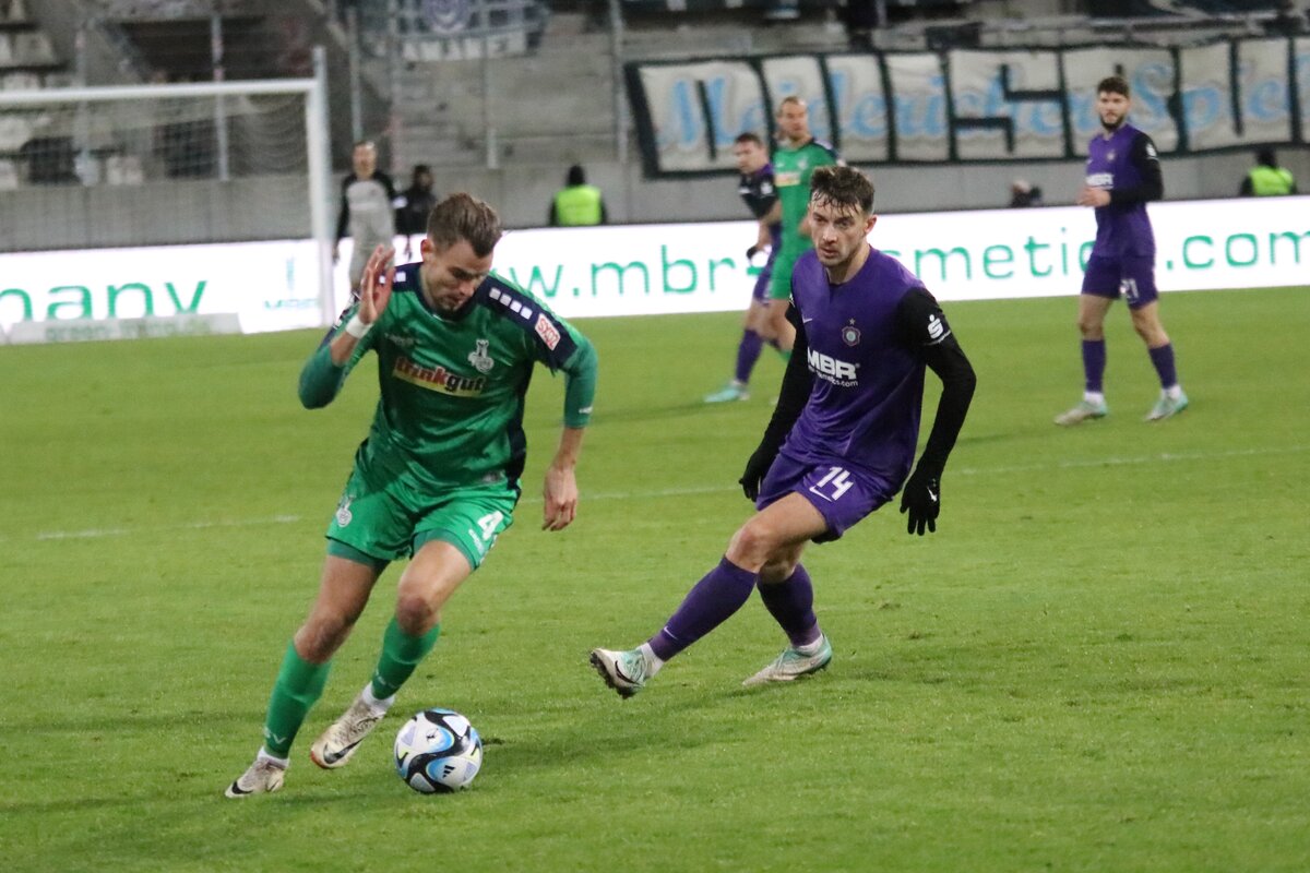 Ein Auer Abwehrfehler brachte die Zebras wieder ins Spiel und auch in der Folge konnten die Veilchen kleinere Abspielfehler und Unsauberkeiten nicht abstellen. Die nötige Antwort der Auer blieb aus und beide Mannschaften neutralisierten sich in der Folge mehr und mehr im Mittelfeld. Erst in der Schlussphase konnten die Hausherren die Schlagzahl wieder erhöhen und erneut scheiterten die Veilchen nur am Aluminium. Der eingewechselte Sean Seitz dribbelte sich auf dem linken Flügel in den Strafraum, seine scharfe Hereingabe konnte Marvin Knoll nicht entscheidend klären und aus gut zehn Metern kam Bär zum Abschluss. Wieder klatschte der Ball an den linken Pfosten und die Veilchen verpassten den späten Siegtreffer. So blieb in der letzten Schicht im Erzgebirgsstadion beim 1:1.