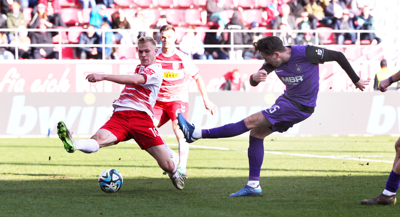 Ein Punkt beim Tabellenführer und dennoch hätte an diesem Nachmittag auch mehr für die Veilchen drin sein können. So verpassen die Lila-Weißen den Sprung in das obere Tabellendrittel und im nächsten Heimspiel wartet die nächste Herausforderung auf die Mannschaft von Pavel Dotchev. Mit Preußen Münster reist die Mannschaft der Stunde ins Erzgebirge. Die Adler aus den Münsterland rangieren derzeit auf Rang 5 und haben seit November erst ein Spiel verloren und bereits fünf Siege in diesem Kalenderjahr eingefahren. Karten für die Partie im Erzgebirgsstadion sind weiterhin im Fanshop und online erhältlich.