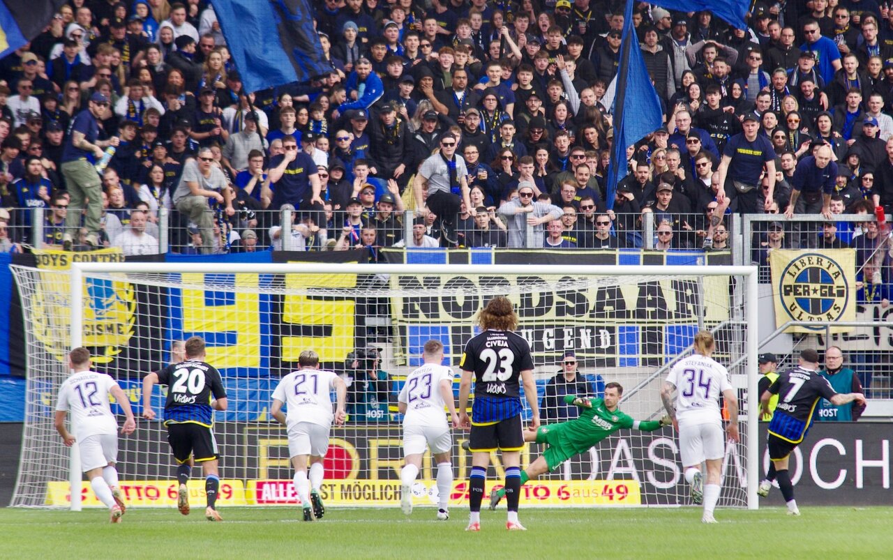 Auch nach dem Wirkungstreffer bekamen die Veilchen keine zwei Beine auf den Rasen des Ludwigsparkstadion. Der FCS dominierte das Spiel und insbesondere Calogero Rizzuto drehte immer weiter auf. In der 33. Minute versuchte es der Rechtsverteidiger erneut aus der Distanz, nach einer geklärten Ecke zog Rizzuto ab. Diesmal blieb aber Männel Sieger im privaten Duell und lenkte den Ball über die Querlatte. Nur Augenblicke später war der Veilchen-Kapitän dann aber erneut geschlagen. Wieder machte es der FCS schnell und hebelte die Abwehr mit einer Seitenverlagerung aus. Calogero Rizzuto legte im Strafraum unbedrängt quer und Lucas Kerber konnte per Hacke verwandeln - 2:0 für de Molschder. Und die Veilchen waren damit noch ziemlich gut bedient, Martin Männel entschärfte weitere Großchancen der Hausherren vor der Pause und hielt Aue im Spiel.