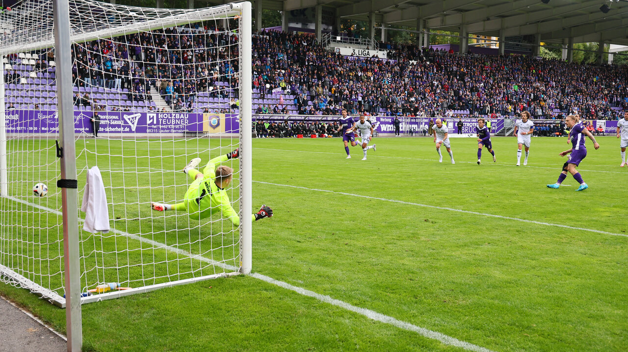 Stattdessen konterte die Arminia und in der 78. Minute machte Marius Wörl den Deckel drauf. Der eingewechselte Mittelfeldspieler legte sich den Ball nach einem Gegenstoß zurecht und schlenzte den Ball zum 1:3 aus Auer Sicht ins Tor. Der bittere Schlusspunkt und die erste Niederlage der Veilchen in der 3. Liga. Trotz einer engagierten Leistung und guten Torchancen im ersten Durchgang standen die Lila-Weißen am Ende mit leeren Händen im Erzgebirgsstadion.