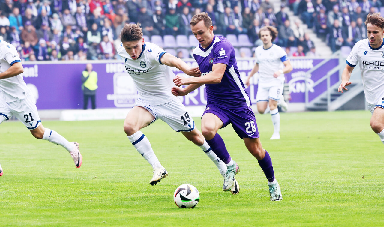 Verfolgerduell im Lößnitztal - die Veilchen werden als Tabellenführer zum Gejagten. Am 5. Spieltag empfingen die Lila-Weißen im heimischen Erzgebirgsstadion den Fünften Arminia Bielefeld. Gegen den Traditionsverein aus Ostwestfalen war Aue bereits auf der Siegerstraße, ehe die Gäste das Spiel drehten. Unser Spielbericht.