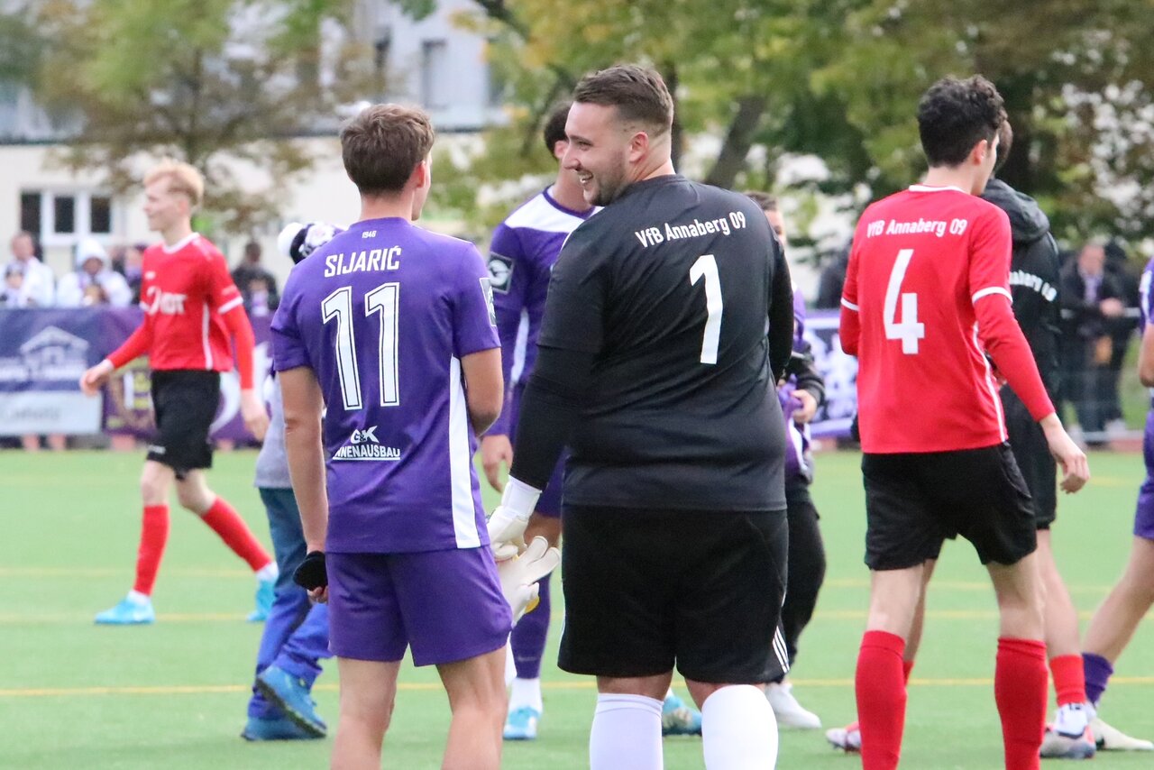 Aber Annaberg verkaufte sich teuer und die Mannschaft von Trainer Lars Walther bot keine Fehler an. In 30. Minute hatte Omar Sijaric nach Flanke von Seitz die nächste Chance. Der Schuss von der Strafraumkante wurde durch Ali Loune noch verschärft, aber wieder war Sander hellwach und parierte. Der Bann brach erst kurz vor der Pause, Jonah Fabisch fand vor dem Strafraum eine Lücke in der Abwehr und bediente mit einem Steckpass Omar Sijaric. Der Flügelstürmer zielte unter die Latte und ließ Sander diesmal keine Chance. 1:0 für Erzgebirge Aue.