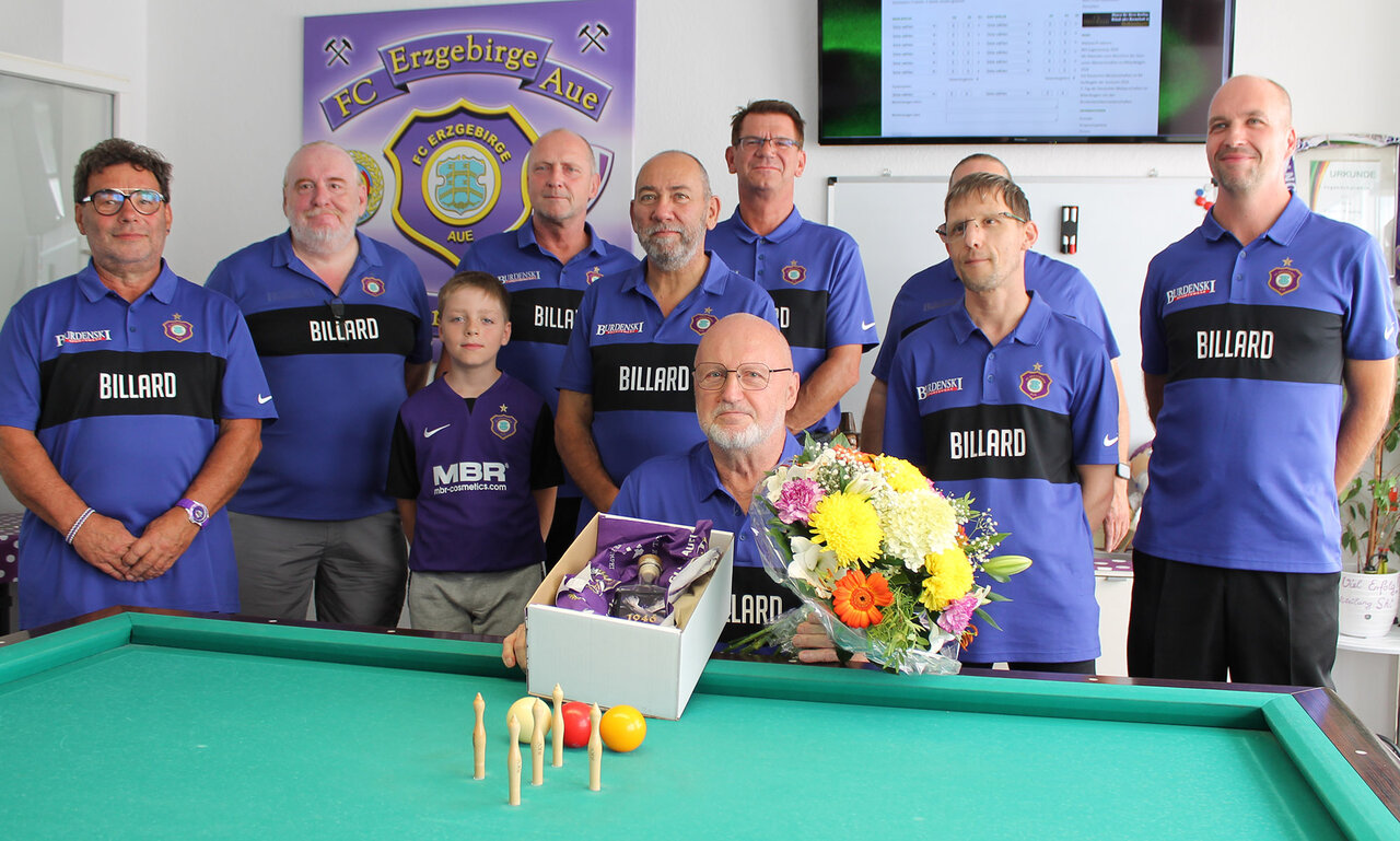 Ralf Martin war mehrfacher Deutscher Meister, Landes - und Kreismeister sowie Deutscher Familienmeister im Billardkegeln. Auch mit jetzt 73 Jahren ist der Auer bester Spieler der Abteilung Billard des FC Erzgebirge Aue. Für seine Leistungen und seine 60-jährige Vereinstreue wurde er am 31. August 2024 geehrt.