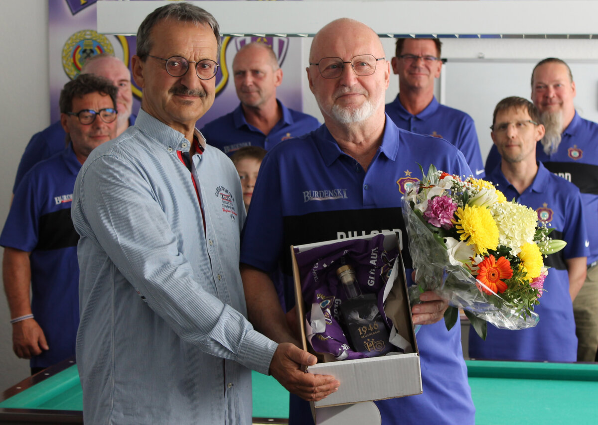 Der Kumpelverein belohnte diese besondere Verbundenheit mit einer guten Flasche „Veilchenwhisky”, einem großen Blumenstrauß und herzlichen Wünschen für Gesundheit und weitere Erfolge. Erfahrung und Können des Altmeisters der Abteilung werden auch in der aktuellen Saison, die am Samstag begann, gebraucht.