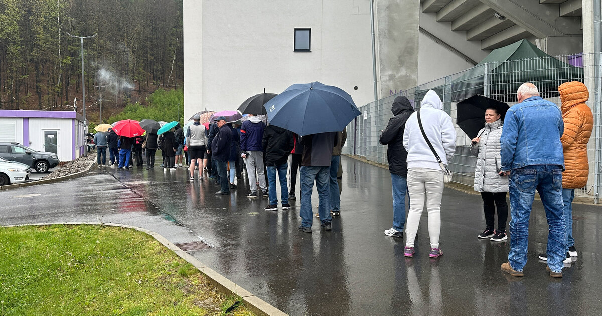 Bei strömendem Regen bildete sich schon weit vor Öffnung des Fanshops am Stadion lange Schlangen. Vom Wetter ließen sich die treuen FCE-Anhänger nicht abhalten, sondern sicherten sich ihre Tickets für den sportlichen Höhepunkt der diesjährigen Saisonvorbereitung gegen den aktuellen Champions League-Halbfinalisten in Schwarz-Gelb. Zunächst haben Mitglieder und Dauerkartenbesitzer die Möglichkeit, Eintrittskarten zu erwerben.
