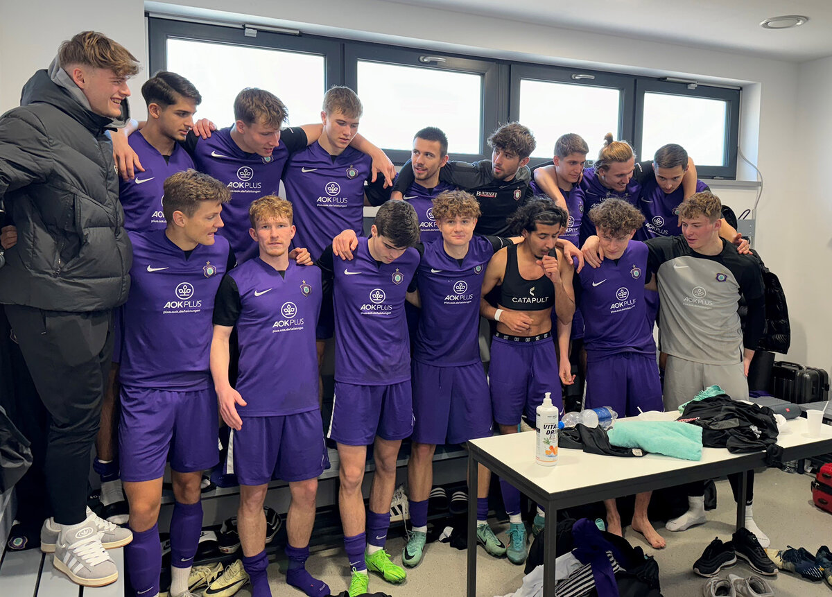 Die U16 des FCE trat gegen den VFC Plauen an und erlebte ein spektakuläres Spiel. Aue startete gut, war spielbestimmend und ging durch eine direkt verwandelte Ecke von Leo Dohle mit 1:0 in Führung (19.). Nach 21 Minuten mussten die Auer dann notgedrungen wechseln, nach Handspiel außerhalb des Strafraums wurde der Keeper vom Platz gestellt und agierten fortan in Unterzahl. Die Veilchen verlegten sich auf Konter, kassierten nach der Pause per Elfmeter durch den ehemaligen Mannschaftskameraden Maximilian Schulz das 1:1 und belohnten sich für eine kämpferisch starke Leistung in der vierten Minute der Nachspielzeit durch Julian Roch mit dem umjubelten 2:1-Siegtreffer.