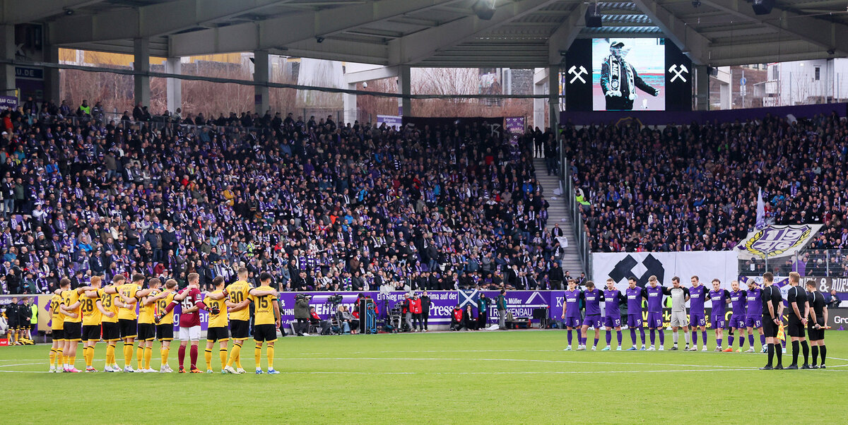 Das ewig junge Duell zwischen Aue und Dresden hielt nicht nur ein intensives und spannendes Spiel vor 15.000 begeisterten Besuchern bereit, sondern auch Höchstleistungen auf den Rängen. Mit einer großartigen Choreo und dem Schriftzug „Kumpelverein“ in der Fankurve startete das sportliche Kräftemessen, setzte sich mit respektvollem Auftreten während der Schweigeminute für Klaus Zink fort und endete mit großartiger Unterstützung für beide Mannschaften von den Tribünen bis zur letzten Minute.