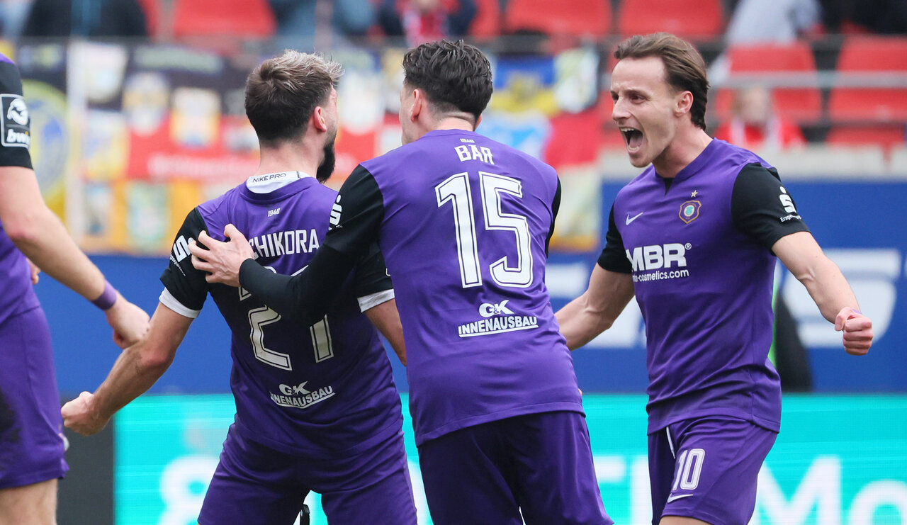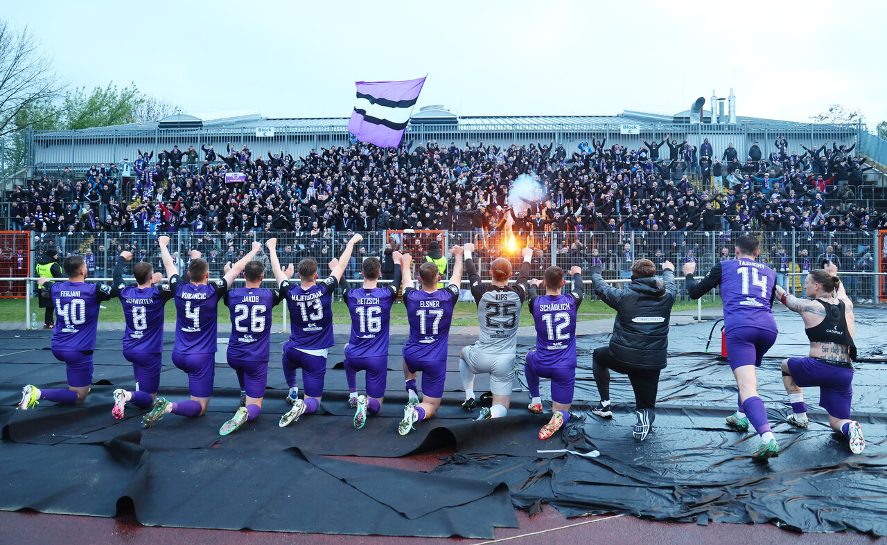 Keine Woche nach dem Ostduell in Halle wartete das prestigeträchtige Sachsenderby gegen Dynamo Dresden auf die Veilchen. Der Erzrivale aus der Landeshauptstadt kam als Tabellenzweiter und einem 7:2-Sieg gegen Lübeck in den Schacht. Nach drei Pflichtspiel-Pleiten gegen die Schwarz-Gelben waren die Lila-Weißen gefordert. Fast eine halbe Stunde brodelte das Sachsenderby nur auf den ausverkauften Rängen, dann entlud sich der Druck ein erstes Mal. Auf der linken Seite suchte Erik Majetschak seinen Flügelspieler Kilian Jakob. Dieser war eigentlich schon von Kammerknecht gestellt, doch Jakob tanzte gleich zwei Gegenspieler aus, ging in den Strafraum und fand mit seinem Querpass Marcel Bär. Der Top-Torjäger der Veilchen fackelte nicht lange und schweißte das Spielgerät unter die Latte. 1:0 für die Veilchen und das Erzgebirgsstadion stand Kopf.
