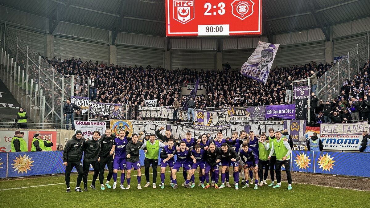 11. Februar - die Lila-Weißen zu Gast in Halle zum Ostduell gegen den HFC. Ein richtungsweisendes Spiel für beide Mannschaften. Die Hallenser steckten tief im Abstiegskampf, während die Veilchen mit einem Dreier weiter an die Tabellenspitze rücken konnten. Den letzten Sieg an der Saale holte Aue noch unter dem Namen Wismut 1988 und auch an diesem grauen Sonntagnachmittag sollte es alles andere als leicht werden. 20 Minuten plätscherte die Partie im Leuna-Chemie-Stadion eher dahin, bis der HFC den ersten Auer Fehler zur Führung nutzte. Ein misslungener Rückpass wurde die Steilvorlage für Halles Dominic Baumann, der Männel umkurvte und aus spitzem Winkel den Ball im Tor unterbrachte. 1:0 für Halle.