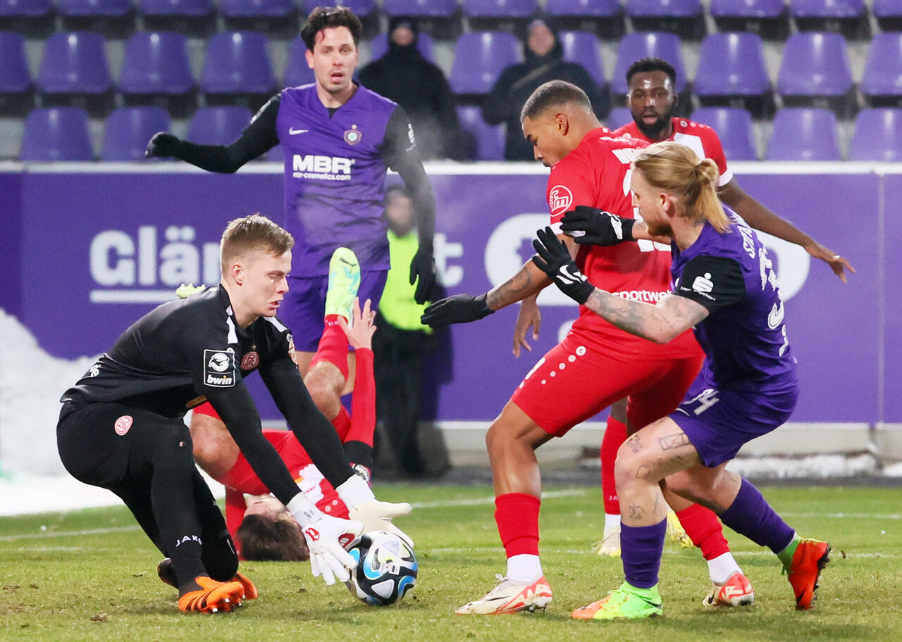 Nachdem zum Start ins Jahr 2024 zweimal die identische Startelf aufgelaufen war gegen Essen und in Sandhausen, erfolgt am Ende der englischen Woche nun zwangsläufig eine moderate Rotation mit mindestens zwei personellen Wechseln. Alternativen bietet der Kader des FCE und es zahlt sich aus, dass in den drei Januar-Testspielen alle Kicker des Aufgebots viel Wettkampfpraxis sammeln konnten.
