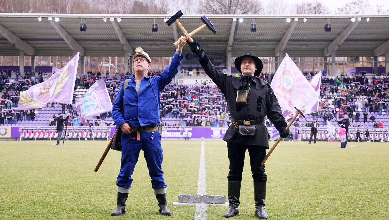 Reinhard Lange ist beim FC Erzgebirge Aue bekannt wie ein bunter Hund. Nicht zuletzt wegen seines lila Helms. Der „Kumpel“ gehört seit Jahren nicht nur zum Begrüßungskomitee für die Mannschaften beim Betreten des Spielfeldes und hat seine 100. Stadionführung hinter sich. Ein bemerkenswertes Jubiläum für einen besonderen FCE-Fan.
