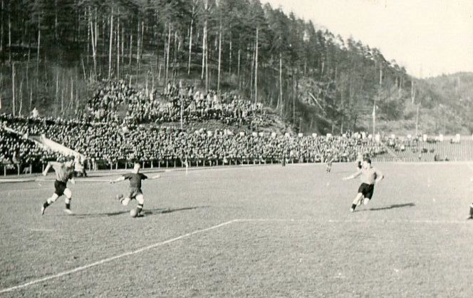 Hippmann, der weitaus weniger beschäftigt war als sein Gegenüber, wartete mit einigen ausgezeichneten Paraden auf, ließ aber andererseits gewisse Unsicherheiten erkennen. Das Deckungsdreieck vergaß mehrfach das notwendige Aufrücken und beschwor dadurch einige brenzlige Situationen herauf. Bis zur Pause führten die Gebrüder Wolf den Ball oft zu lange, wobei allerdings zu berücksichtigen ist, dass die Stürmer bei der konsequenten und massierten Deckung wenig Gelegenheit hatten, sich anzubieten. Im Sturm, in dem Viertel Trögers Posten (Willis linkes Bein muss noch drei Wochen in Gips bleiben) zufriedenstellend ausfüllte, spielte man recht einsatzfreudig, und es gab keine Ausfälle. Vielleicht hätte man allerdings bei etwas mehr Schussfreudigkeit aus größerer Entfernung Dr. Weiß doch das ein oder andere Mal überwinden können.