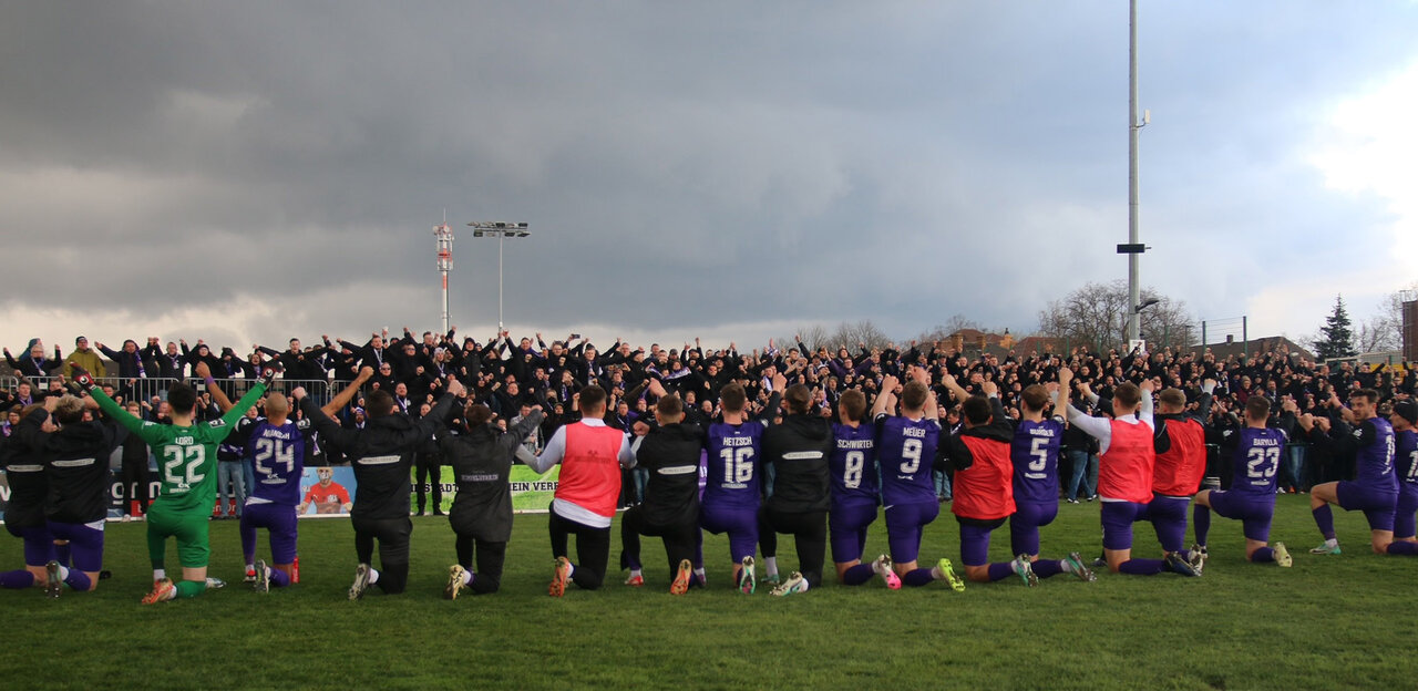 Der Ausflug nach Grimma hatte sich gelohnt. Sportlich, weil die Mannschaft der schwierigen Bedingungen trotzte und nach einigem Holpern mit seriöser Vorstellung gegen tapfere Freitaler die Pflichtaufgabe mit dem 2:0-Sieg erfüllte. Zwar wies Trainer Pavel Dotchev seine Schützlinge zunächst darauf hin, dass sie geschwitzt bei eisigem Wind wegen Erkältungsgefahr möglichst schnell nach Abpfiff in die Kabine gehen sollten. Doch natürlich war der Weg in die „Kurve“ ein Muss als Dankeschön für die Unterstützung. Mit gekreuzten Hämmern und kollektivem Abklatschen wurde gemeinsam der nächste Schritt Richtung DFB-Pokal bejubelt.