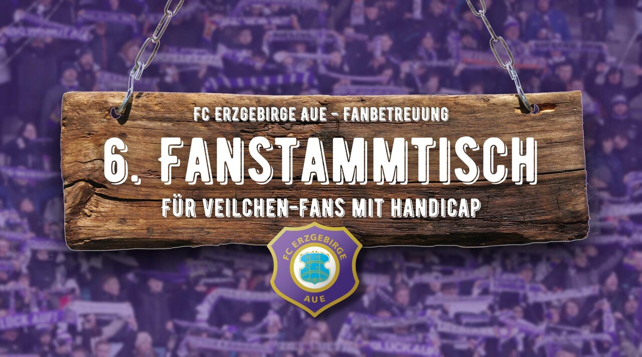 Die FC Erzgebirge Aue – Fanbetreuung lädt ein zum 6. Fanstammtisch für Veilchen-Fans mit Handicap am Dienstag, den 09. April 2024 um 16 Uhr (Einlass ab 15:30 Uhr) in die Wernesgrüner Lounge des Erzgebirgsstadions.