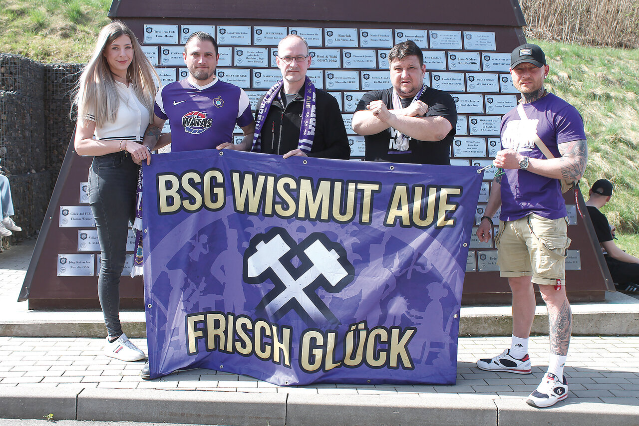 Zwischen Weihnachten und Neujahr zieht es Erzgebirger in die Heimat. Das ist guter Brauch. So trafen sich Aue-Fans aus Johanngeorgenstadt und solche, die dort aufwuchsen, aber nun woanders leben, Ende 2023 vor einer Garage nahe der Grenze. „Bei ein paar Bierchen erinnerten wir uns an Erlebnisse, die uns mit dem FCE verbinden und es entstand spontan die Idee zu einem Fanclub”, berichtet Christian. Am 29. Dezember war das und die Lila-Weißen fackelten nicht lange – sie gründeten „Frisch Glück”. Benannt ist der Fanclub mit acht Mitgliedern nach dem gleichnamigen Stolln mit dem Schaubergwerk „Glöckl”.