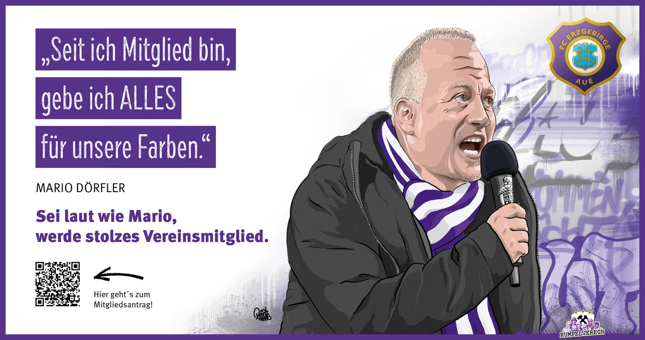 Prominente Mitglieder von Erik Lesser bis Julia Taubitz, von Falk Schellenberger bis Eric Frenzel, von Stadionsprecher Mario Dörfler bis zum Fanbeauftragten Heiko Hambeck, von Kapitän Martin Männel bis Sportgeschäftsführer Matthias Heidrich wurden von Aue-Fan Boogie jeweils mit Augenzwinkern und passendem Statement auf Plakaten platziert, entsprechende Postkarten und Aufkleber sind seitdem sichtbarer Anreiz. Inzwischen zählt der FC Erzgebirge Aue auch dank der jüngsten Initiative 9449 Mitglieder – das 9500. steht also in den Startlöchern.
