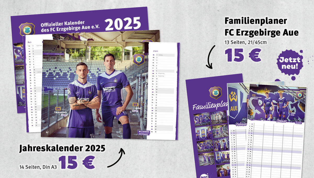 Die Winterreifen sind aufgezogen, das Jahresende naht. Die Planungen für Weihnachten und 2025 laufen vielerorts bereits auf Hochtouren. Der FC Erzgebirge Aue ist im FanShop kalendarisch dreifach vorbereitet. Mit dem Adventskalender, dem Jahreskalender und dem Familienplaner 2025.