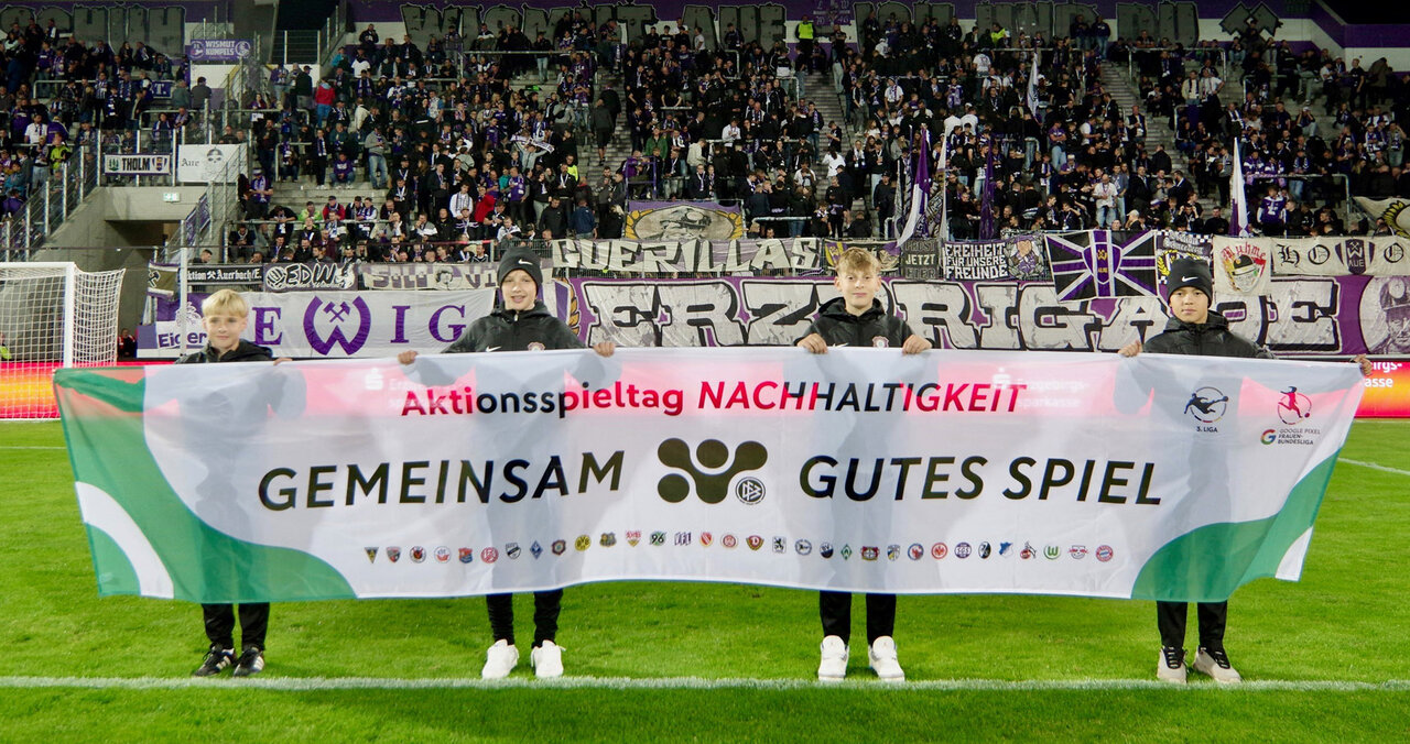 Der Deutsche Fußball-Bund hat mit der 3. Liga und der Frauen-Bundesliga Aktions-Spieltage für Nachhaltigkeit ins Leben gerufen. Das thematische Banner auf dem Spielfeld ist nur eine von vielen Maßnahmen. Der FC Erzgebirge Aue bemüht sich ungeachtet der Aktualität um Nachhaltigkeit in vielen Bereichen. Denn dieses komplexe Thema geht uns alle an.