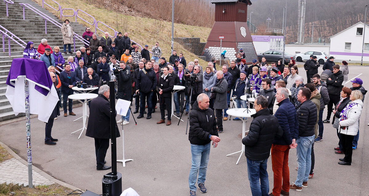 Ehre, wem Ehre gebührt. Am 1. März 2024 wurde die Umbenennung der Vereinsanschrift in Gerd-Schädlich-Platz 1 vollzogen, das Namensschild am Erzgebirgsstadion feierlich enthüllt. Etwa 100 Fans und Medienvertreter verliehen diesem offiziellen Akt durch Oberbürgermeister Heinrich Kohl, FCE-Präsident Roland Frötschner und Landrat Rico Anton einen würdigen Rahmen.