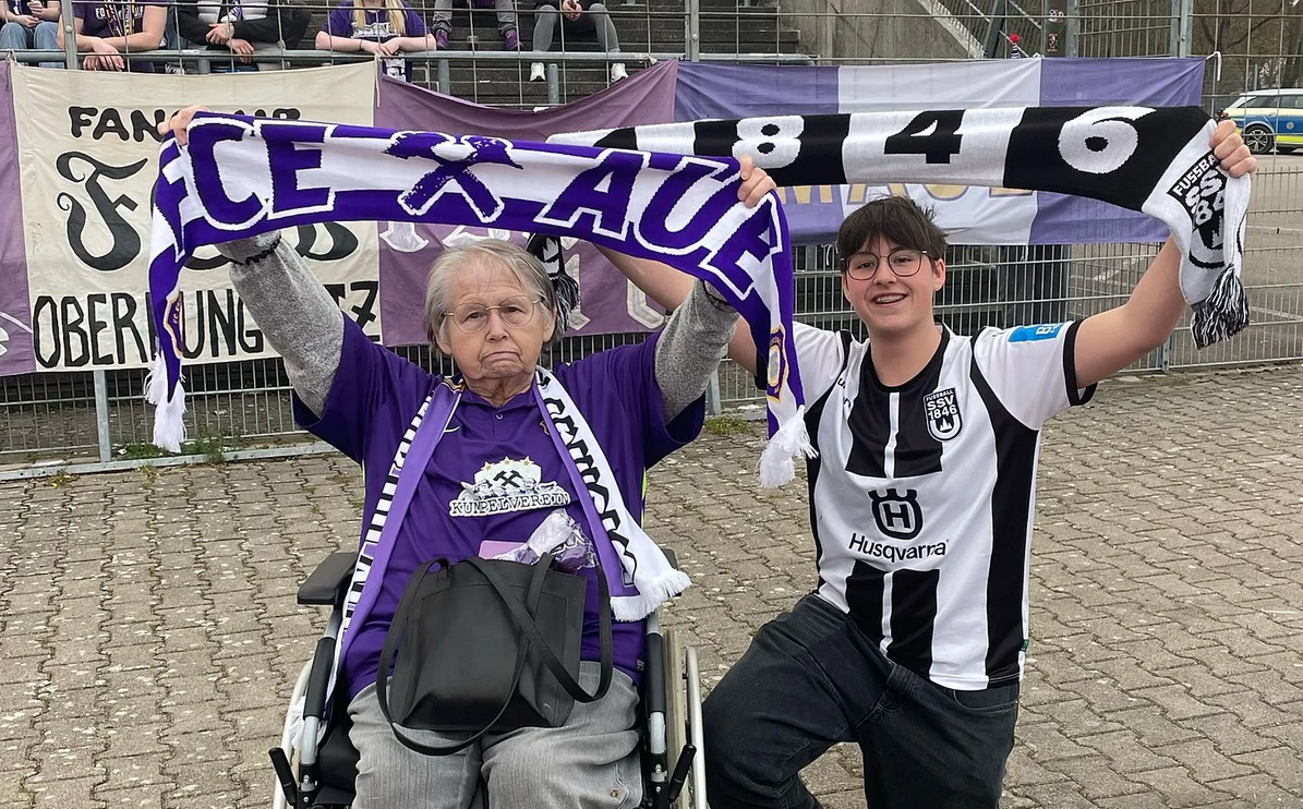 Der Facebook-Eintrag der Enkelin spricht Bände und ist selbsterklärend: "Meine Oma wollte unbedingt ins Stadion, als klar war, dass Ulm gegen Aue spielt. Sie kommt gebürtig von dort (aus dem Erzgebirge) und ist mit 13 Jahren nach Ulm gezogen. Natürlich habe ich alles versucht, damit sie für die Ulmer jubelt. Aber keine Chance, Heimat ist eben Heimat.